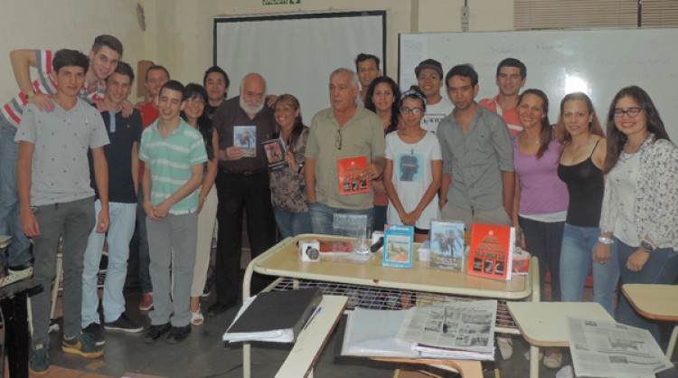 Un nuevo viaje al interior de la provincia se cumplió el miércoles pasado en el marco de la serie de periplos denominada “Gira poético literaria” que realiza el grupo integrado por Isaac Humberto Sevi y Esteban Abad con la asistencia técnica de Claudio Benítez, el motorista Ricardo Small y un fotógrafo.  En la oportunidad visitaron localidades del Alto Uruguay como Santa Rita y Alba Pose tomando vistas fotográficas y luego estuvieron en 25 de Mayo. En el IEA 10 Tras gestiones realizadas por Vitalino Acosta, director de la FM Sapucay de Santa Rita y funcionarios del Ejecutivo Municipal de 25 de Mayo,  se efectuó una presentación en el Instituto de Educación Agraria 10, ubicado en el Centro de Integración Comunitaria de la avenida San Martín. Allí fueron recibidos por José Olivera, su director, quien tuvo afectuosas palabras de bienvenida para la delegación y por la profesora de Letras, Alejandra Escobar quien ofició de presentadora de los integrantes de la “Gira…”.Previo a la charla y muestra de los libros, fueron invitados a pasar al salón comedor para el almuerzo. “Van a probar la comida hecha con ingredientes sembrados, cultivados y cosechados por los alumnos”,  señaló la profesora Escobar.El menú consistió en un arroz con carne (“lo único que no viene de la huerta escolar”), con verduras y hortalizas, acompañado por ensalada tricolor (remolacha, tomates, repollo y otras verduras de hoja), y pan horneado en la escuela. Después tuvo lugar la presentación de los libros de Sevi “Triángulo” y de Abad, “El amor de la Palmera y el Horquetero”; al finalizar fueron muy aplaudidos y recibieron como obsequio productos de la granja escolar. Instituto Hernandarias, PosadasYa en Posadas, de noche, hubo otra reunión, ahora en el Instituto Hernandarias -Félix de Azara y Belgrano-, con alumnos de Periodismo de la institución. Fue un encuentro emotivo y que por tratarse de estudiantes  terciarios, permitió a los disertantes expresarse también acerca de la relación entre la literatura y el periodismo y hablar un poco de las letras misioneras, un arte que crece en la provincia.