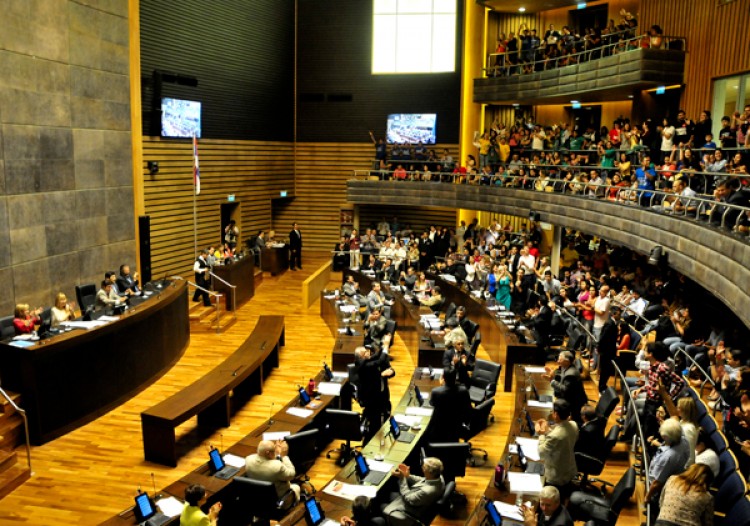 El pasado jueves tomaron estado parlamentario las propuestas de los diputados estudiantiles en tres proyectos que reunieron las iniciativas impulsadas por los jóvenes legisladores en el Parlamento Estudiantil, desarrollado los días 16 y 17 de septiembre. Con uno de los proyectos se busca crear el programa “Mitã Digital” en todos los establecimientos educativos dependientes del Servicio Provincial de Enseñanza Privada y en el nivel secundario con el objetivo de favorecer la incorporación de las tecnologías de la información y la comunicación en procesos de enseñanza y aprendizaje. El programa provincial tendrá las mismas características que Conectar Igualdad, pero contemplará a las escuelas públicas de gestión privada. Un segundo proyecto de Ley busca sustituir el Artículo 11 de la Ley V – Nº 5 (Antes Ley 2.973) para implementar el control antidoping “a todas aquellas personas que compitan en torneos deportivos con el fin de erradicar la violencia en los deportes, sean estos juveniles, amateur o federados”. Por último, se elevó un proyecto de comunicación para que el Poder Ejecutivo provincial gestione soluciones a diversas necesidades planteadas por parlamentarios juveniles en relación a la construcción de albergues estudiantiles; playones polideportivos; medidas de protección y seguridad vial y asignación de móviles y efectivos policiales en todos los establecimientos educativos secundarios de la provincia. Los proyectos fueron elevados por el presidente de la Cámara, Carlos Rovira.