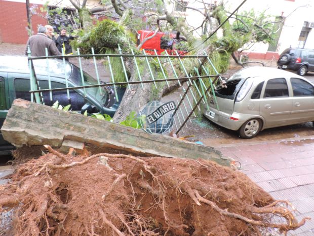 Un añoso árbol cayó sobre tres vehículos que se encontraban estacionados en pleno centro de la capital provincial. El siniestro ocurrió a consecuencia de los vientos y las intensas precipitaciones que caían en ese momento en la zona.El hecho se registró ayer al mediodía sobre la calle Rioja, entre Buenos Aires y Rivadavia de Posadas. Algunos vecinos dieron cuenta que días atrás se realizaron trabajos de remodelación en la vereda donde se encontraba el ejemplar, y para ello se habrían tenido que cortar algunas raíces que sobresalían de la superficie de la acera. Esto se suma a las fuertes precipitaciones y vientos que azotaron a la ciudad en las últimas horas que hicieron que el ejemplar de chivato, perdiera estabilidad y se precipitara sobre tres vehículos que se encontraban estacionados. Una vez ocurrido el suceso, vecinos de la cuadra y transeúntes alertaron a los bomberos, quienes se hicieron presentes y constataron los daños causados por el enorme ejemplar. Producto de la caída del añoso árbol, el tránsito se vio interrumpido durante varias horas, hasta que los Bomberos de la provincia y el personal municipal trabajaron varias horas para retirar el ejemplar y rescataron los tres vehículos que se encontraban atrapados debajo. Luego se procedió al traslado del viejo árbol. Fuentes de la Policía informaron que los tres vehículos que se encontraban estacionados sufrieron daños de distinta consideración. Se trató de un vehículo Chevrolet Corsa, un VW Gol, además de una camioneta utilitaria marca Renault Kanngo. El siniestro ocurrió en un horario pico, pero afortunadamente no se tuvieron que lamentar víctimas o heridos, debido a que el siniestro ocurrió en un horario pico y en pleno centro de Posadas, en el inicio del feriado y la persistente llovizna sobre la zona.
