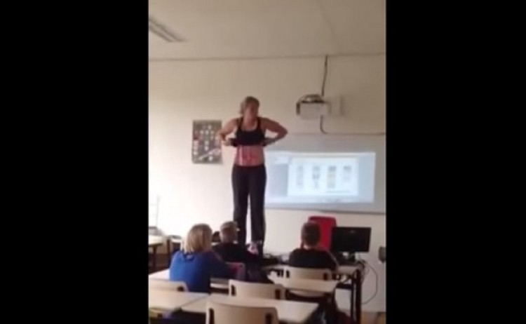 Una profesora holandesa ha generado revuelo en Facebook por sus fotos y videos de una clase de Biología. A la docente se le ocurrió la idea de desvestirse durante una lección de anatomía para ilustrar a sus alumnos sobre los diferentes músculos y huesos del cuerpo.La maestra Debby Heerkens, del colegio Groene Hart Rijnwou, se subió a su escritorio y se fue quitando la ropa, mostrando un traje de spandex ilustrado precisamente con los músculos y órganos humanos. Y bajo esas prendas había otras mostrando los huesos.
