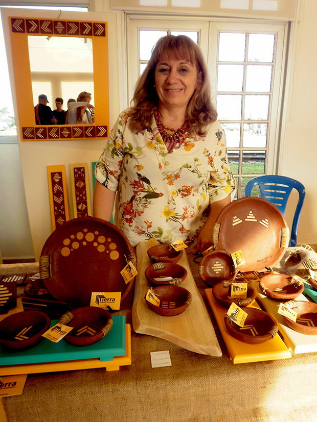 Ahora las vasijas, platos y guardas son de tierra colorada pura gracias a la técnica que logró incorporar la artesana Marta Eizmendi, quien reconoció que "hace mucho tiempo que la idea me daba vueltas en la cabeza hasta que logré mi cometido", aunque claro que no quiso dar a conocer su secreto. PRIMERA EDICIÓN estuvo con la creadora en la Expo Feria Regional de Artesanías a la que asistimos invitados especialmente por la Subsecretaría de Cultura de la provincia.   Marta es artesana desde siempre, y nos contó que sus productos son hechos de tierra compactada con  una resistencia de una cerámica y a los que les suma detalles de tacuara fileteada e hilos de planta rastrera, "así te podés llevar un producto misionero auténtico porque he visto muchas artesanías, pero ninguna que sea totalmente de nuestra tierra. En Iguazú hay muchos productos, algunos muy lindos, pero no son de acá, incluso muchos son hechos por artesanos en Salta, con las Cataratas y tucanes. Eso me hacía pensar en que tenía que hacer algo propio y hace cuatro meses que lo logré. Además son utilitarios porque se pueden usar para picadas, para colocar frutas o simplemente de adorno. Se puede pasar un trapo porque los productos están impermeabilizados y repelen el agua". Así nos mostró cuencos, platos y hasta fabrica pequeños cuadrados con detalles imitando a los tejidos guaraníticos, que se pueden utilizar como guardas, como las que vemos en el espejo. Secreto bien guardadoPor ahora, la manera de fabricar los cuencos de tierra colorada está bien guardada, pues Marta quiere primero patentar su fórmula, pues "nadie pudo lograr que la tierra no se resquebraje y yo estuve mucho tiempo probando, consultando con profesionales hasta que lo logré".Cuando alguien adquiere uno de sus productos se lleva un detalle hecho a mano, con elementos locales y en una bolsa de arpillera con su marca.Contactos y pedidosMarta es de Posadas y para contactarse con ella pueden también llamar al 376-154733980. De esa manera podrán realizar pedidos, incluso de guardas, platos, fuentes, cuencos…