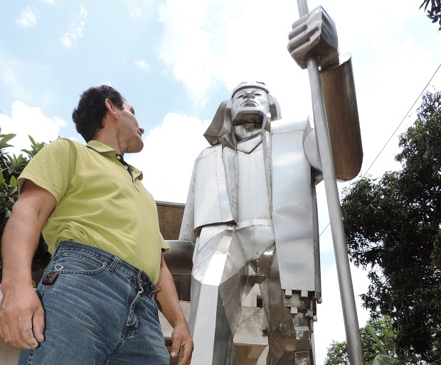 Al llegar el invierno, de forma misteriosa, alguien le pone una bufanda a “El Matero”. Una escultura que desde el 2005 se convirtió en el atractivo turístico del paseo Bossetti, ubicado en pleno centro de la capital misionera. El hábito comenzó en 2008 y continúa siendo una práctica que se repite a lo largo de estos años. Construido en hierro forjado, representa la imagen de un hombre que está cebando mate y a la vez, observa a quienes transitan por calle Bolívar.“El Matero nunca sufrió un atentado. Y cuando empieza el frío alguien que no sabemos quién, le coloca una bufanda de colores y del tamaño del matero. A esa escultura se la adoptó y lo incorporamos como nuestro”, describió la historiadora Silvia Gómez. Para su creador, el artista Gerónimo Rodríguez tiene que ver con la identificación y apropiación que realizan las personas. “La gente se identifica con El Matero. Lo protegen, alguien que toma mate es misionero, es argentino y lo toman como propio, como del pueblo y por eso lo cuidan. La obra surgió como una forma de reflejar la cultural regional”. Y agregó “lo mismo con los murales que realicé, nunca lo agredieron, tampoco al El Guitarrista”. Nuestras costumbresEn diálogo con PRIMERA EDICIÓN, Rodríguez señaló que la mayoría de sus obras muestra parte de nuestra historia. “Tomo características de la región, del lugar que hacen referencia a nuestras costumbres, raíces y forma de vida. Es lo que reflejamos y conocemos en las obras de arte”. Un ejemplo de ello es el mural en el Shopping, “es una semblanza de lo nuestro con las Cataratas, la vegetación y los animales. Refleja lo nuestro”.El artista nacido en Montecarlo fue el escultor de innumerables obras que brillan en distintos puntos de la provincia. Entre ellos: El Matero, Andrés Guacurarí, El guitarrista y la Virgen de la Candelaria. Esta última obra, fue encargada este año por dicho municipio para rememorar, de cierta manera, a una Virgen que existió en la época de los jesuitas. La obra que generó debates En diciembre de 2013, la estatua del prócer guaraní Andrés Guacurarí en la costanera generó múltiples debates en la comunidad. “Pero cada artista tiene sello personal, no es capricho, es inherente a cada artista porque expresa algo con su impronta, y eso se aplica en cada obra. Y a veces parece algo que no encaja con lo clásico y es rechazado por alguna persona que no comprende”, detalló Rodríguez. Y siguió “pero esto no hay que comprenderlo. Simplemente te gusta o no te gusta”. Se trata de una escultura de acero inoxidable de 15 metros de altura y con más de 2.50 metros hasta la punta de la lanza . La obra tiene una estructura interna de vigas metálicas soldadas a la base. “Es de carácter artístico monumental de estilo figurativo contemporanizado, con estilización, síntesis de la forma y rasgos geometrizados”, detalló su creador. Adopta una pose de piernas separadas con el apoyo de una lanza que le da un soporte de trípode a la escultura y una fuerte carga expresiva. El rostro en firme actitud defensiva y determinante refleja su carácter y las facciones características del guerrero nativo guaraní dejando entrever también el mestizaje de nuestra región. “Con una altura de su silueta y la expresión de su actitud unifica así características de la civilización del pasado histórico y del presente, con una proyección de libertad también en el futuro”.Un poco sobre RodríguezNació en enero de 1961 en Montecarlo donde cursó sus estudios primarios y secundarios. Es profesor de dibujo y pintura egresado del Instituto Montoya. Expuso sus obras en forma individual y colectiva en diferentes localidades de la provincia, también en Corrientes, Formosa y Buenos Aires. Pero además, en Brasil, Paraguay y Ucrania.