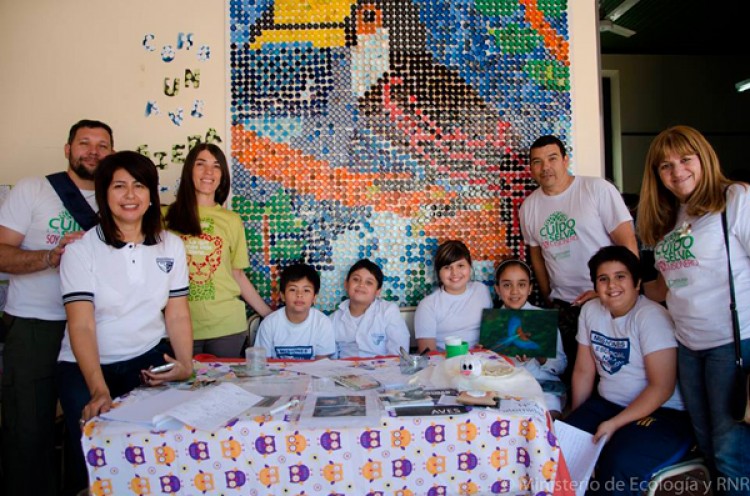 Con alegría, la docente María Del Rosario Del Valle, del 5to. grado de la Escuela Fraternidad, nos hace parte de los trabajos que realizaron en la escuela con los alumnos. La propuesta era concientizar sobre la protección de aves y relacionaron el tema con la necesidad de evitar la contaminación con la reutilización de desechos.Fueron trabajando en un mural para el que se juntaron tapitas, luego las clasificaron en colores para crear el tucán. También colaboraron los papás, así intervino toda la comunidad educativa y participan todas las áreas. Realizaron observación de aves y vieron que algunas estaban sin patitas, buscaron el porqué y en algunos casos es porque quedan atrapadas con los chicles de la calle. Visitaron también el Ministerio de Ecología, conocieron las aves regionales. Buscaron además cómo atraer a las aves a los hogares sin tenerlas en jaulas, entonces vieron que pueden hacerlo con comederos que incluso pueden colocarlos en los departamentos. Se pueden colocar botellas, bidones, potes de helados y preparar un espacio para las aves. En las vidrieras grandes deberían poner algo sobre el vidrio porque las aves chocan y muchas mueren por eso. El grupo tan feliz con su mural terminado y con el trabajo que realizó durante todo el año, sigue concientizando a la población. Los mismos alumnos salieron a la calle para hablar con la gente y ellos reconocen que hubo un cambio en ellos, ya que muchos chicos tenían gomeras y las entregaron en la escuela, unas 15 gomeras ya no atacarán más a los pajaritos. Fueron a la plaza y uno de los chicos observó cuántas personas tiraban papelitos y contó 25. De ese total, 20 de ellas se tomaron su tiempo y escucharon lo que el niño tenía para decirles, fueron y juntaron su papelito para tirarlo al basurero; mientras que las 5 restantes siguieron de largo sin que les importe. Esta propuesta es alentadora y reconfortante, pues junto a la docente también aprenden valores. Los adultos aprendemos de ellos y ojalá todos tomemos conciencia. Agradecieron a toda la Institución, a los docentes y a los padres que colaboraron.