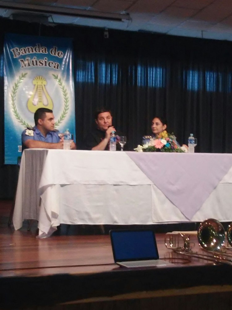Ante una nutrida concurrencia en el salón de usos múltiples del Instituto San Basilio Magno comenzó este martes el curso de capacitación y perfeccionamiento instrumental para vientos metales, organizado por la Banda de Música del Servicio Penitenciario Provincial. Programación iniciada por su directora Técnica Administrativa, Alcaide Principal Teresa Mykietyn, quien en su breve discurso dio la bienvenida a todos los participantes de distintas edades y niveles de ejecución, como así también agradeció la presencia del destacado y reconocido músico, creador y director de Ensamble Trombonanza de Santa Fe, profesor Rubén Félix Carughi, disertante del curso. Se resaltó la gran importancia del mismo para los integrantes que conforman la Banda de Música del Servicio Penitenciario de la Provincia, donde acceden a una alta calidad, innovación y excelencia en lo que respecta a la capacitación y perfeccionamiento, siendo esto posible gracias a la política institucional de los directivos el Inspector General, Alcaide General Francisco Javier García, la subdirectora general del SPP Alcaide General Nilda Estela Correa y el director General del SPP Alcaide General Miguel Ángel Maidana.