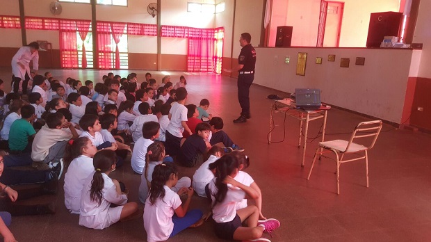 Fue en la mañana de este jueves, cuando el grupo de policías que conforma el Gabinete de Educación Vial, dependiente de la Dirección General de Seguridad Vial y Turismo, llegaron hasta la Escuela 53 de esta localidad.Fue una charla educativa y explicativa de las normas de seguridad en materia de tránsito y las reglas como peatones. Fue dirigida a alumnos que asisten desde primero a séptimo grado de dicho establecimiento.