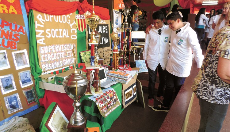 Las viejas glorias deportivas que pisaron el verde césped del Club Jorge Gibson Brown, los sueños que se forjaron en la cancha de básquet del Club 2 de Abril, los deportes y eventos que hicieron grande al Club Huracán. Todas y cada una de esas historias dijeron presente este jueves en el XII Encuentro de Proyectos de Investigación Antropológico Social organizado por las escuelas primarias del Circuito III, que en esta ocasión quisieron conocer y aprender la historia de los diferentes clubes de barrio de las ciudades de Posadas y Garupá. Fueron 23 escuelas las que pusieron en manos de alumnos de sexto y séptimo grado la tarea de entrevistar a los socios y directivos y contar las historias que hicieron quedar en la historia a los clubes barriales, que supieron ser grandes atracciones. "Este encuentro se hace desde hace doce años", le comentó a PRIMERA EDICIÓN la supervisora escolar Catalina Jure. "En esta instancia trabajamos con los clubes porque nuestra zona se caracteriza por estar compuesta de  relocalizados, por lo tanto tenemos que fortalecer el arraigo, el sentido de pertenencia e incluirnos en otras instancias y lugares, revincularnos con otras instituciones que son importantes. Una de ellas es el club. Entonces el trabajo consiste en bucear investigando la historia de los clubes, los referentes deportistas o culturales significativos, el origen del nombre, cómo están compuestas las instalaciones y que los chicos puedan conocerlas", agregó Jure.El proyecto permitió resaltar las actividades deportivas y sociales que llevan adelante los clubes y cómo ellas favorecen el desarrollo, la integración e inclusión de los niños a través del afianzamiento de valores y normas. "Ellos eligieron a qué clubes podían investigar", indicó Jure.Este es un trabajo que se hace desde el Proyecto Educativo Institucional (PEI). "Durante todo el año los chicos aprenden a investigar sobre varias cosas y luego eligen un tema y lo presentan. No hay premios ni nada, solamente es mostrar el trabajo que se hace. Esta es una manera de enseñar y educar a través del trabajo en grupo porque nosotros también trabajamos en grupo, las escuelas están en redes". Una vez que terminó la jornada, las investigaciones vuelven a sus escuelas de origen y allí se exponen para que la comunidad pueda verlas y, luego, forman parte de la historia de la escuela. "Esta es una manera de traer la memoria, reconocer y mantener las raíces. Todos tenemos una historia y los clubes barriales son instituciones que congregan gente, son el hito de las comunidades", indicó Jure. La supervisora escolar aprovechó la ocasión para agradecer la "fantástica colaboración que tuvieron los clubes porque nos prestaron los trofeos, directivos y referentes accedieron a las entrevistas. Sin ellos nada de esto hubiese sido posible. Nos han regalado su tiempo muy generosamente", finalizó. Cazadores por la 205Mauro Benítez de 11 años, Román Sarza de 13 y Franco Martín también de 13 fueron los encargados de llegar al Club Centro de Cazadores, inaugurado el 3 de enero de 1950, e investigar cuáles fueron sus inicios. “Nuestra escuela se relaciona mucho con el club porque ahí hacemos los campamentos, festejamos el día del niño y también hacemos la fiesta de educación física”, indicó Román en la visita de PRIMERA EDICIÓN. Pasa que la escuela es del barrio de Cazadores y por eso, cuando llegaron, fueron recibidos con los brazos abiertos. “Todos los años cuando llegamos nos reciben muy bien”, aseveró Franco. “Hacen muchas actividades, rugby, tenis, hockey y tienen muchas copas. Además, están orgullosos de las deportistas que nacieron ahí y llegaron lejos, como Lucina Von Der Heyde”.El Brown por la 76Jorge Piriz de 12 años, Facundo Mereles de 13 y Blas Carosini de 13 años se adentraron en el mundo del verdirrojo para conocer los detalles de su historia. “Nos interesó el Brown por todo lo que representa para la ciudad y ahora quizás ya somos un poco hinchas”, contaron los jóvenes mientras posaban con sus camisetas. “Para contar toda su historia, le hicimos una entrevista a Carlos Suiresz, el director del equipo de fútbol de primera”, señalaron los jóvenes. La institución se fundó el 16 de marzo de 1916 y ya comenzó con todo con el fútbol. “Fue la primera disciplina sobre la cual se inicia el club. Ahora hay más: voley, judo, boxeo, básquet, patín”, relataron los chicos. “Se le puso el nombre de Jorge Gibson Brown por un jugador que integró la selección argentina”.El Huracán por la 821Gisela Fernández de 11 años, Leonel Argüello de 12, Alexis Sosa también de 11 y Luciano Rodríguez de 12, no tuvieron que ir muy lejos de su escuela para conocer la historia del club de su barrio: el Huracán. “Pudimos entrevistarnos con varias personas que nos contaron la historia del club, uno de los más conocidos de Posadas”, dijeron los chicos en la visita de PRIMERA EDICIÓN. Las imágenes de la muestra avalaron sus dichos, porque en todas aparecían con viejas glorias del club mientras los entrevistaban y después, en la popular foto posando. “El club tiene varias disciplinas, una de ellas, la más tradicional, es la de bochas. Pudimos entrevistar a uno de sus campeones”, contaron los alumnos de la Escuela 821 del barrio Rocamora. “Cuentan con un salón para fiestas”, agregaron.2 de Abril por la 665Los alumnos de la Escuela 665, los anfitriones, se encargaron de buscar los inicios de uno de los más nuevos de la lista: el Club de Básquet 2 de Abril, del barrio. Camila Cabrera de 12 años, Francisco Martínez de 13 y Alan Rojas de 12 presentaron su proyecto de investigación para contar de la particular historia de su club, que llegó a salir en la tele. “Tiene una historia muy linda porque los jóvenes del barrio vieron que había muchas necesidades y también muchos talentos que se estaban desperdiciando, entonces empezaron con una escuelita de básquet e