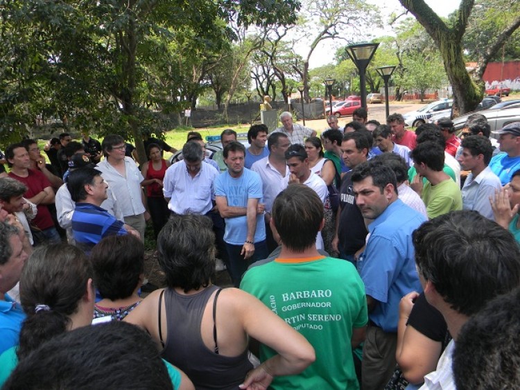 Los referentes, simpatizantes y excandidatos a concejales del Partido Agrario y Social, de la Unión Cívica Radical, el Frente Unidos y el PRO no descartan cortes sorpresivos en el microcentro hasta la hora convenida. Yaya le confirmó al diputado radical Germán Bordón que a última hora de la tarde el Tribunal decidirá si recepta o rechaza el Recurso de Revocatoria contra el Acta Acuerdo 932 por la cual proclamaron a los ediles en todos los municipios de Misiones sin respetar el cupo para las minorías. Hay mucha tensión frente a las oficinas de la dependencia judicial, en el Parque Paraguayo. En asamblea, los referentes decidieron la marcha y no descartan endurecer las protestas en caso de una respuesta negativa al "avasallamiento inconcebible a la Constitución Provincial". El pasado lunes se conoció la polémica <a href="http://www.primeraedicion.com.ar/nota/207098/escandalo-en-el-reparto-de-bancas-en-misiones.html">resolución del Tribunal</a> que violó el artículo 48 inciso 5 de la Constitución Nacional y además, apartándose de lo decidido en 2011, determinó que habrá medio centenar de municipios que sólo tendrán concejales renovadores en sus cuerpos deliberativos, hecho insólito e inédito en la provincia. El <a href="http://www.primeraedicion.com.ar/nota/207215/con-medida-judicial-y-acampe-la-oposicion-reclamara-las-bancas-para-.html">acampe</a> se inició el miércoles.
