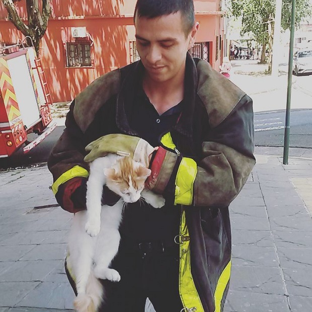 En horas del mediodía de este domingo, María Piñeiro escuchó el llanto de un gatito que venía de la calle. Cuando salió, lo vio “muerto de miedo mirando hacia abajo y llorando. Esta en lo alto del árbol y era imposible que podamos bajarlo nosotros. Incluso un vecino me dijo que ya estaba ahí desde hacía un tiempo, que parece que lo bajaron de un auto y el gatito del susto se subió al árbol”, contó la técnica en marketing a PRIMERA EDICIÓN. Sin dudarlo, Piñeiro decidió llamar al 911 y desde ahí se comunicaron con la Central de Bomberos, que asistieron al lugar -en la calle General Paz casi Sarmiento de Posadas- casi de inmediato. Mientras los bomberos trabajaban, los vecinos estaba atentos y Piñeiro hizo las fotos que ahora compartió con PRIMERA EDICIÓN. Según confesó, “con la emoción no les pregunté los nombres” a los rescatadores, por eso volvió a llamar y le dijeron que el joven bombero es el agente Aldo Satorra, mientras que también participaron el oficial Enrique Amarilla y el chofer cabo primero Marcelo Vega. “La chica que me atendió del 911 se llama Paola Resquitin, quien enseguida se comunicó con el cuartel para que vengan”, contó agradecida la profesional. También dijo que “ahora el o la michi está en mi casa. Tiene un ojito como cieguito y se deja mimar. Mañana (por el lunes) lo llevo al veterinario para que me diga si es macho o hembra, que lo revise; y por ahora me lo quedo aunque ya tengo otros dos”.