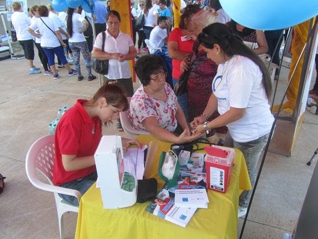 Durante el encuentro, además se realizaron distintos controles sanitarios a la población: peso y talla, de glucemia, presión arterial y riesgo cardiovascular. Se instalaron varias carpas en el playón de la Cascada, en un encuentro que alcanzó una masiva convocatoria de personas.A través de dicho test se busca determinar si una persona posee antecedentes de familiares con diabetes y sobre hábitos de vida. Es por ello que es imprescindible tener un control y monitoreo constante para detectar a tiempo esta enfermedad degenerativa que acaba con la vida de millones de personas en el mundo.Por otra parte un total de 385 prestaciones de salud se realizaron en la Carpa del Ministerio de Salud Pública que se instaló en el paseo público: (103 controles de glucemia, 86 de peso, 85 de talla, 95 de presión arterial y se aplicaron 16 vacunas).Cabe destacar que uno de cada diez misioneros tiene diabetes, en tanto que el 50 por ciento de ellos no sabe que tiene la enfermedad. Según los últimos estudios sobre factores de riesgo que se realizaron en el país durante 2013; la prevalencia de la población argentina sobre la enfermedad es del 9,5%, en tanto que en Misiones los números indican que la misma se sitúa en el 9,8%.Una alimentación saludable puede ayudar a prevenir la aparición de la diabetes tipo 2. Es una parte importante para el control efectivo de todos los tipos de diabetes para ayudar a evitar complicaciones.