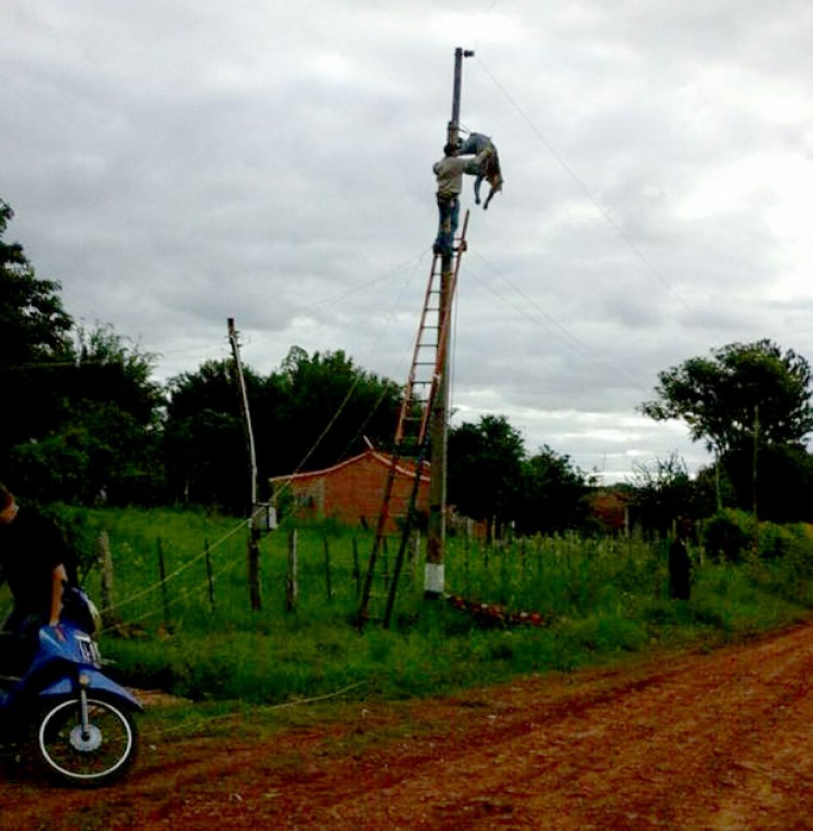 Andrés Alvarenga, de 50 años, es un electricista contratado por la Administración Nacional de Electricidad (Ande) de Paraguay para realizar trabajos de mantenimiento. El viernes por la tarde,cerca de las 18 horas, Alvarenga realizaba el despeje de un cable del tendido eléctrico afectado por las ramas de un árbol tras el temporal que azotó la zona y al intentar de restablecer la conexión recibió una descarga de 23.000 voltios de la línea de alta tensión.La descarga provocó que Alvarenga perdiera el conocimiento y sufriera quemaduras en casi todo su cuerpo. Pese a la rápida reacción policial y de los bomberos de Coronel Bogado se tardó casi 50 minutos para rescatar al hombre ya que ni la prestataria nacional contaba con el equipamiento necesario para bajarlo. Una vez rescato que pudieron bajarlo del poste, lo reanimaron y luego lo trasladaron a Encarnación. Dada la complejidad de las heridas que presenta, Alvarenga volverá a ser trasladado, pero esta vez a Asunción.Fuente: itapuanoticias.tv