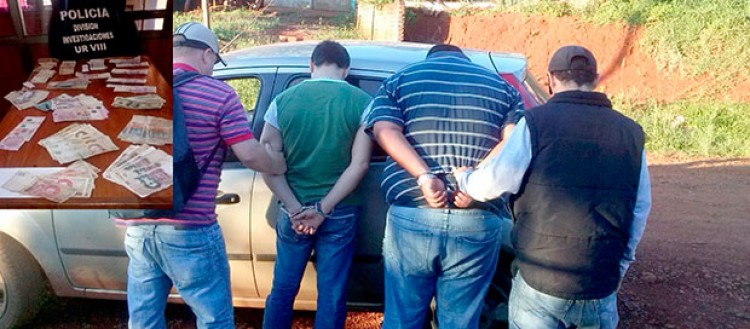 No todo lo que brilla es oro y no todo billete que circula es legítimo. Así pudieron comprobarlo varios comercios de San Vicente donde dos individuos realizaron compras con billetes apócrifos.De acuerdo a las investigaciones realizadas por efectivos de la UR VIII, la maniobra trascendió a partir de las compras realizadas con dichos billetes, luego de lo cual se procedió a la detención de Alejandro (35), domiciliado en Rosario, provincia de Santa Fe, y Miguel (38), oriundo de Eldorado.Luego de apresar a los individuos, los investigadores constataron que tenían 11.290 pesos y 800 dólares falsos, además de 700 pesos legítimos en billetes de baja denominación, los que fueron incautados al igual de el Ford Fiesta en el cual se movilizaban.Tanto los detenidos como lo incautado fue puesto a disposición del juzgado Federal de turno.