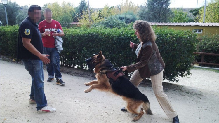 La forma en que ataca el perro está controlada por los entrenadores. Su intención no es morder al agresor, ni tan siquiera herirlo, sino mantenerlo a distancia de la mujer y hacer que huya.El animal va equipado con un bozal de impacto, hecho con cuero rígido. Ataca con el hocico e intenta dirigirse a la caja torácica del atacante para dejarle sin respiración y tirarlo al suelo. Junto con el bozal, el can lleva un arnés de seguridad que permite que la guía le controle en todo momento. Si estira la correa, se pone en posición de alerta. Y al gritar "attack" se abalanza .La función básica del perro de defensa es disuadir, es decir, que el maltratador no se acerque a la víctima, pero si hace falta, el can también está entrenado para atacar. Y en el supuesto de que el hombre lleve un arma, la mujer puede retirarle el bozal al animal con un simple movimiento para dejar que el perro muerda.Fuente: Medios Digitales