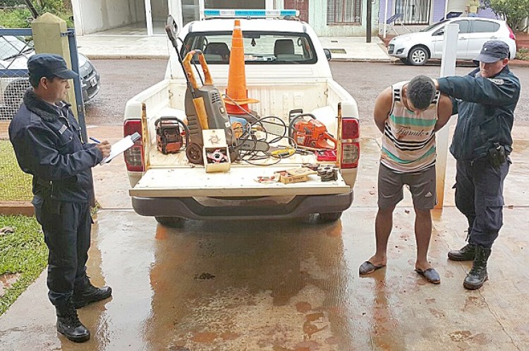 En pocas horas, algunas fuentes resaltaron “pocos minutos”, efectivos de Unidad Regional XI recuperaron herramientas de alto valor que le fueron robadas durante la madrugada a un empresario maderero de Campo Grande.Confirmaron también voceros policiales que la víctima, Emilio G. de 59 años, denunció que de su aserradero “Nono”, tras romper una ventana, le robaron tres motosierras Husqvarna, una hidrolavadora, dos juegos de fresadoras y varias herramientas, como juego de llaves y destornilladores. Se inició un rastrillaje con los primeros datos obtenidos, y se montó un equipo de rastrillaje encabezado por oficiales de la comisaría de Campo Grande, junto integrantes de la brigada de Investigaciones Aristóbulo del Valle.En menos de dos horas, el caso habría quedado resuelto, con la demora de un adolescente de 17 años, en cuya vivienda en el barrio Gendarmería se secuestraron los elementos robados.Según señalaron, los elementos robados eran de alto valor comercial. Por ejemplo, cada frezadora supera los 20 mil pesos de costo. Las tres motosierras costarían quince mil pesos y la hidrolavadora seis mil de la misma moneda.Si bien todo lo secuestrado fue reconocido por el denunciante, se dispuso su devolución en caracter momentáneo como depósito judicial.