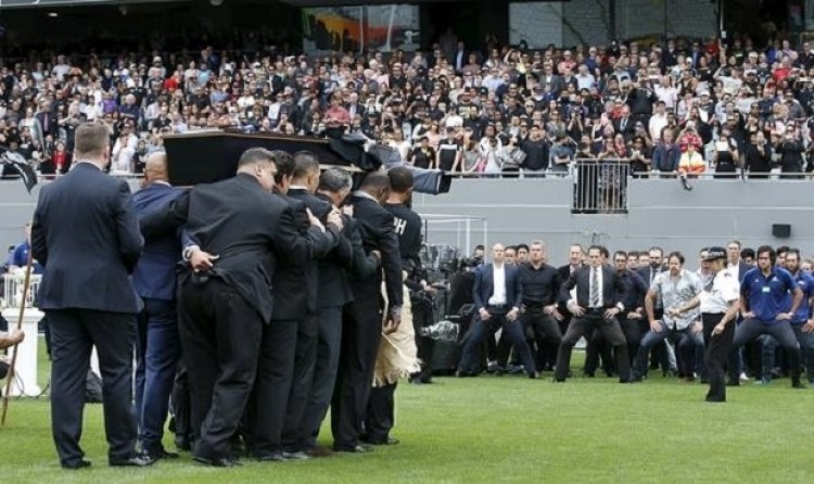 Miles de neozelandeses se congregaron este lunes en la ciudad de Auckland para darle el último adiós a la legendaria estrella del rugby Jonah Lomu, quien falleció a mediados de mes a los 40 años y será enterrado el martes."Él fue un gigante y deja un enorme vacío en el rugby y en la vida de sus amigos y familiares, pero su legado de humanidad, perseverancia e integridad perduran", dijo el presidente de la World Rugby, el francés Bernard Lapasset, en esta ceremonia celebrada en el estadio Eden Park.El paso del féretro por el estadio, seguido de una comitiva en la que estaban la viuda de Lomu y sus dos hijos, fue acompañado por los cánticos y bailes de guerreros con sus lanzas que representaron el tradicional ritual maorí del haka.El féretro fue llevado por Jerome Kaino, John Mayhen y Michael Jones, de la selección de rugby de los All Blacks, así como Manu Vatuvei, Frank Bunce y Dylan Mika, del equipo de los Warriors, según la emisora Newstalk.Muchos de los familiares de Lomu que asistieron a la ceremonia, a la que seguirá un entierro mañana de carácter privado, vistieron camisetas con la imagen del emblemático helecho plateado, aunque con una de sus hojas desprendiéndose de él, o bien llevaban inscritos el número 11 que caracterizó al legendario jugador.Fuente: diario ABC (España)