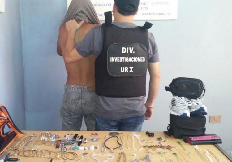 Efectivos de la división Investigaciones UR-X concretaron un procedimiento en las últimas horas en el barrio Las Tacuaritas, donde procedieron a la detención de Eduardo G., alias "Castor".El joven, de 21 años, fue sorprendido por los investigadores cuando merodeaba una zona de malezas donde presuntamente transportaba objetos malhabidos. Efectivamente, los efectivos constataron la existencia de los elementos robados en el lugar, en medio de una intensa recorrida.En este lugar fueron encontrados y secuestrados 70 joyas diversas, 7 teléfonos celulares, 3 carteras, 1 cámaras digital, 1 par de zapatillas, pen drive. Gran parte de estos objetos pertenecen a Carolina R., quien días atrás había radicado la denuncia en comisaría 15ª.Se busca establecer la procedencia del resto de los elementos y la presunta vinculación del detenido con otros hechos delictivos.
