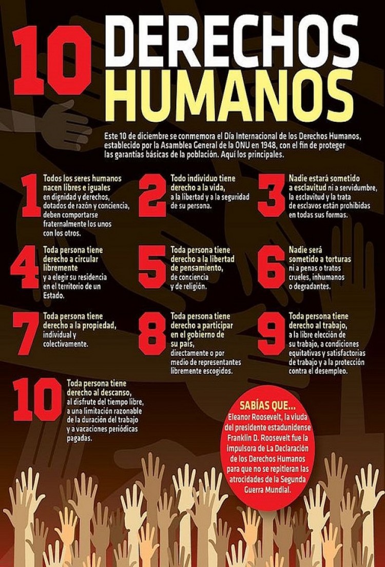 El Día de los Derechos Humanos se celebra todos los años el 10 de diciembre para conmemorar el día de 1948 en que la Asamblea General de las Naciones Unidas aprobó la Declaración Universal de los Derechos Humanos. En 1950, la Asamblea adoptó la resolución 423 (V), invitando a todos los Estados y organizaciones interesadas a que observen el 10 de diciembre de cada año como Día de los Derechos Humanos. Este año el Día está dedicado a conmemorar el 50º aniversario de los dos pactos internacionales de derechos humanos: el Pacto Internacional de Derechos Económicos, Sociales y Culturales y el Pacto Internacional de Derechos Civiles y Políticos.Por otra parte, el Día del Trabajador Social se celebra el 10 de diciembre desde 2012, por iniciativa de la Federación Argentina de Asociaciones Profesionales de Servicio Social (FAAPSS) precisamente para hacerlo coincidir con el Día de los Derechos Humanos. Dejó así de celebrarse el 2 de julio por su origen religioso, ya que recordaba el Día que la Virgen María visitó a su prima Isabel. La Resolución JG Nº 1/12 dice que “la cuestión de los Derechos Humanos es el horizonte que da sentido a nuestras prácticas profesionales y el eje central de nuestro proyecto ético como colectivo profesional”.