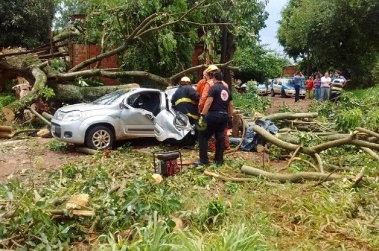 Por el lugar circulaba un Fiat Siena (remís) al mando de Jorge R., de 65 años, quien llevaba como pasajeros a Juana Duarte (46), su hija Malena (18) y una menor de 8 años.En un momento determinado, cayó un árbol sobre el vehículo, resultando gravemente herida Juana Duarte, quien falleció prácticamente en el acto, en tanto que sus hijas resultaron con lesiones de distinta consideración y fueron hospitalizadas preventivamente.Intervinieron en el lugar efectivos de la comisaría Primera de Eldorado, Policía Científica y personal de otras dependencias para retirar el árbol del vehículo dañado.