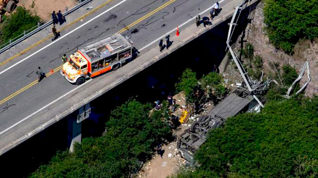 Un total de 43 personas murieron y otras ocho resultaron heridas cuando un micro que transportaba personal de la Gendarmería Nacional desbarrancó en la madrugada de ayer, en momentos en que transitaba por la ruta 34, a la altura de la localidad salteña de Balboa.El ómnibus participaba de una caravana que trasladaba a más de cincuenta efectivos desde Santiago del Estero a Jujuy y a raíz de la tragedia el presidente Mauricio Macri decretó un duelo nacional de 24 horas.Tanto la ministra Patricia Bullrich como el secretario de Seguridad de la Nación, Eugenio Burzaco, viajaron de inmediato al lugar de la tragedia. El Presidente manifestó su “sentido pésame” tanto a las familias de las víctimas como al resto de los integrantes de la fuerza."Todo el pueblo argentino tiene que dar sus condolencias. Hay que mejorar las rutas para que esto no siga sucediendo", afirmó el mandatario.El accidente se produjo a la altura del kilómetro 854 de esa ruta, cuando, por causas que se tratan de establecer, el vehículo cayó al arroyo Balbuena, cuyo cauce se encuentra seco.La trágica cifra de víctimas fue confirmada por Ángel Marinaro, subsecretario de Protección Civil y Abordaje Integral de Emergencias y Catástrofe provincial.Tras confirmar a media mañana que la operación de rescate de personas con vida había terminado, Marinaro dijo que el contingente de gendarmes que había partido de Santiago del Estero y se dirigía a Jujuy para un operativo sufrió el accidente cuando el micro reventó el neumático derecho delantero y chocó contra la baranda del puente Balboa.En ese sector, situado a unos quince kilómetros de la ciudad de Rosario de la Frontera, cayó por 18 metros al cauce de un río seco, para quedar con sus ruedas hacia arriba. Los primeros en participar en la emergencia fueron gendarmes que viajaban en otros micros, a poca distancia.Por su parte, Gustavo Solís, intendente de Rosario de la Frontera, aseguró que el ómnibus “precipitó de un puente a un río seco”."Nos llamaron a las 3.30 pidiendo equipamiento. Inmediatamente pusimos a la gente en alerta y mandamos ayuda", indicó en declaraciones a Radio La Red. El Gobierno salteño informó que en el lugar trabajaron seis ambulancias del Sistema de Asistencia Médica en Emergencias y Catástrofes local, Samec; tres del hospital de Rosario de la Frontera; dos del Hospital de Metán, y dos de la localidad de Potreros.En tanto, un rescatista citado por el portal del diario local El Tribuno señaló que en el lugar "el panorama era desolador, había cuerpos por todos lados y el colectivo estaba literalmente destruido".Describió que "la imagen era dantesca", para luego calificar al hecho como "una verdadera tragedia". "Nosotros sacamos cuatro gendarmes con vida. Uno de ellos está en grave estado y sufrió un paro cardíaco antes de llegar al hospital de Rosario de la Frontera. Antes habían salido con vida otros tres en mejor estado"”, comentó el rescatista.Precisó que "en total serán nueve o diez los sobrevivientes" y aseguró: "No vamos a poder saber la cantidad de muertos hasta que el colectivo que terminó con sus ruedas para arriba sea levantado por las dos grúas". En tanto, Gendarmería Nacional informó que el micro accidentado trasladaba “a integrantes del Destacamento Móvil Cinco"."Los gendarmes se trasladaba por unas decisiones que se iban a tomar en Jujuy, ya que había amenazas. Era para que el Gobierno provincial tenga logística", indicó la ministra de Seguridad de la Nación, Patricia Bullrich. Asimismo, la funcionaria expresó: "Esta tragedia nos conmueve a todos. La mayoría de los cuerpos van a ir a Santiago del Estero. Van a poner un avión para llevar a los familiares". En el lugar de la emergencia también se hizo presente el gobernador salteño, Juan Manuel Urtubey, quien se reunió allí con funcionarios nacionales. El gobernador de la provincia de Salta calificó de "fatalidad" al hecho y expresó su solidaridad con los familiares de las víctimas. "Un abrazo, toda nuestra solidaridad y acompañamiento a las familias de los gendarmes fallecidos", señaló."Casi 1.500 Kilómetros de muerte"En medios salteños describieron con crudeza la realidad de una carretera que se cobra enormes cantidades de vida por año. Se trata de la ruta nacional 34, más conocida en esa provincia como "la ruta de la muerte".La peligrosidad de ese tramo no es de ahora. Para la mayoría de los automovilistas, es una trampa mortal que posee una conformación obsoleta en cuanto a la relación de estructura y el intenso flujo de tránsito que debe soportar. Por esta traza se mueven miles de camiones y colectivos de larga distancia todos los días. A eso hay que agregarle los autos. La ruta nacional 34, también Carretera General Martín Miguel de Güemes, comienza en Rosario y une cinco provincias: Santa Fe, Santiago del Estero, Tucumán, Salta y Jujuy. De una punta a otra, tiene una distancia de 1.488 kilómetros. Los informes técnicos señalan que se trata de una ruta angosta, que debería transformarse en autovía. Por ahora, sólo hay trabajos de ampliación en algunos tramos (Rafaela y Sunchales). A pesar de la urgencia, ese plan de obras recién finalizaría dentro de dos años. Pese a estos datos, el gobernador de Salta, Juan Manuel Urtubey, consideró que la muerte de los gendarmes al desbarrancar un micro fue “una fatalidad” y “la ruta no tuvo nada que ver”. Tres misioneros entre las víctimas Fuentes oficiales confirmaron que dos de las víctimas fatales en el lamentable accidente ocurrido en Salta eran oriundas de Misiones. Uno de ellos es Ignacio Giménez, de 21 años, quien prestaba servicios en el Escuadrón Móvil 5 de Santiago del Estero. En las redes sociales sus familiares y amigos se manifestaron de diversas formas por la irreparable pérdida. El otro misionero fallecido es Daniel Stanechuk, quien tenía 26 años. En diálogo con PRIMERA EDICIÓN el padre de este último, Ju