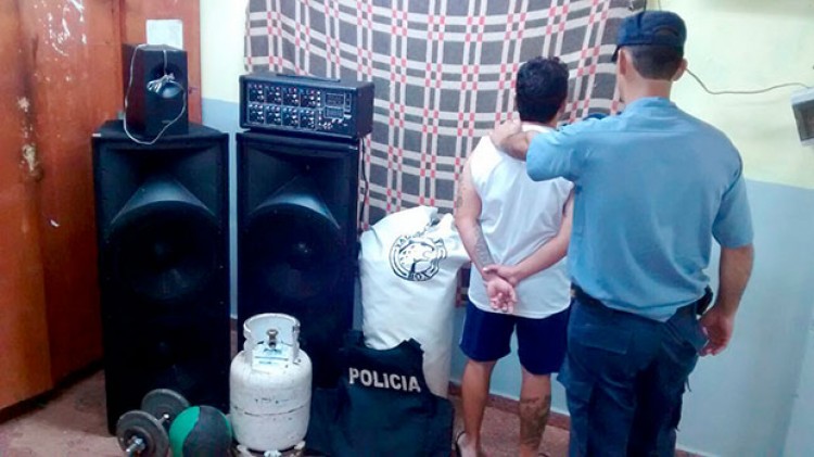 Lamentablemente, el parte del departamento Prensa de Jefatura no precisa dónde se produjo el ilícito, cuándo ni el lugar donde aprehendieron al sospechoso.Sí menciona que se recuperó una garrafa de diez kilogramos; una pelota, discos de hierro para amoladora, una mancuerna metálica, dos bafles de 1,20 de altura, un subwoofer Samsung, una consola, un cilindro de gas y una bolsa de boxeo.En el caso trabajó personal de la seccional Décima.