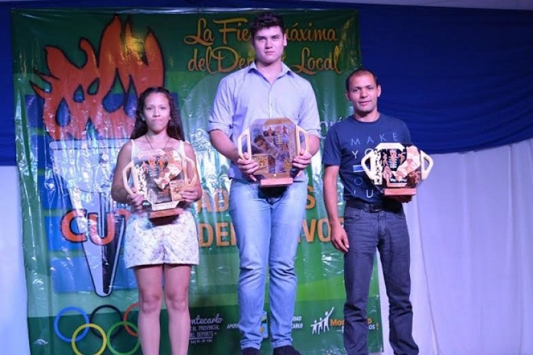 La 27ª entrega anual de los Premios Deportivos Adalides 2015 se llevó a cabo el sábado por la noche en instalaciones del Club de Gimnasia Guatambú, de Montecarlo, con la presencia de cerca de 800 personas además de autoridades municipales.El tradicional evento, que busca premiar el esfuerzo deportivo realizado por los atletas locales a lo largo del año, contó con 22 ternas en diferentes disciplinas deportivas, menciones de honor a tres personas destacadas por su trayectoria en la vida deportiva de la ciudad (Sergio González del Club Unión, Erico Meza del Club Huracán y Ricardo Konig del Club Guatambú), la presentación de los Nuevos Profesionales y un emotivo homenaje de los jugadores del Mamangá Rugby Club a <a href="http://www.primeraedicion.com.ar/nota/5988/el-rugby-misionero-llora-por-un-jugador-de-montecarlo.html">Carlos Nuñez, quien fuera un gran colaborador y jugador del club, que hace unos meses dejo de existir durante una competencia en Gobernador Virasoro (Corrientes)</a>.El Adalid de Oro fue para Matías Mendoza, el de Plata para Paola Bogado y el de Bronce para Ramón Gabriel Da Silva.La elección de la Revelación Deportiva recayó sobre Nicolás Camino, Martín Benítez es la Proyección Deportiva 2015 y como mejor Conjunto Deportivo fue designado el equipo de handball del Club de Gimnasia Montecarlo.