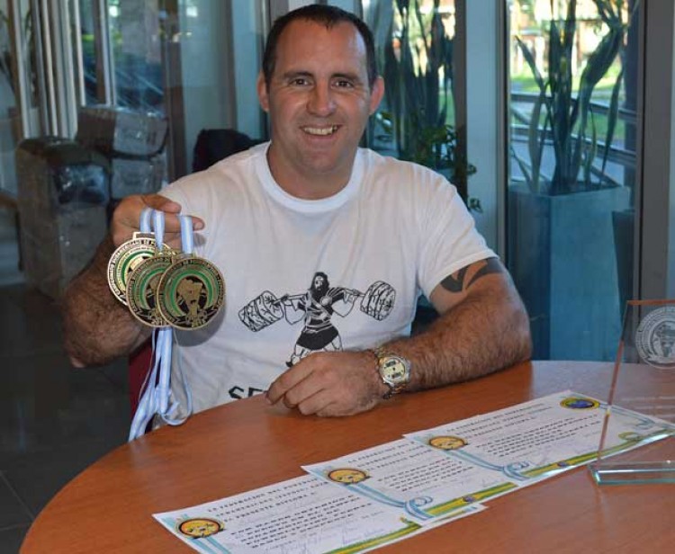 El posadeño Eduardo Elgart (de 41 años) volvió a mostrar un destacado nivel en el Campeonato Sudamericano de Powerlifting, Fuerza en Banco y Despegue que se llevó a cabo en Córdoba (Capital).Allí, el representante de la tierra colorada compitió en la divisional Master 40 a 44 años en la categoría hasta 70 kilos.En la primera prueba en el banco sin equipo (raw), Elgart levantó 170 kilos. Ganó la competencia y además marcó un nuevo récord sudamericano.Luego, en powerlifting con equipo (raw) levantó 300 kilos en sentadilla; 210 en banco y 270 en peso muerto. Esto lo llevó a ganar su segunda medalla de oro y cosechar el récord sudamericano individual y en la sumatoria general.Además, se llevó un premio especial al mejor coeficiente de la competencia.Pero como si fuera poco, el posadeño fue en busca de su tercera medalla dorada y la logró. La misma la alcanzó en prueba de banco con equipo (raw) donde levantó 210 kilos. Alegrías y nuevo desafíoEl misionero a su regreso de Córdoba comentó a DE PRIMERA su experiencia en el Sudamericano: “Realmente me preparé muy bien para este torneo. Ya en el Argentino que se hizo en la misma provincia este año logré tres triunfos e igual cantidad de récords argentinos por lo que llegué con muchas ganas y confianza”.“En las tres pruebas me tenía fe, pero quería buscar el triunfo y el récord en powerlifting y por suerte lo logré. Estoy muy contento, feliz”, agregó el “forzudo” Elgart.El posadeño no se detendrá pese a esta excelente temporada y ya adelantó cual será su próximo objetivo: “Quiero prepararme de la mejor manera para el Mundial de Irlanda del año que viene. Sé que es difícil en la parte económica, pero voy a trabajar para ello. En lo físico me siento muy bien y sé que puedo dar aún más. Ojalá pueda estar en el Mundial y traerme un podio a la Argentina y para Misiones”.Córdoba le sienta bienEduardo levantó en fuerza en banco con equipo (raw) 225 kilos en el Argentino en Villa María y conquistó un nuevo récord argentino. Este lauro no fue el único de 2015. Semanas antes del Argentino, también en Córdoba, levantó 180 kilos en fuerza en banco sin equipo y sumó otro récord argentino.
