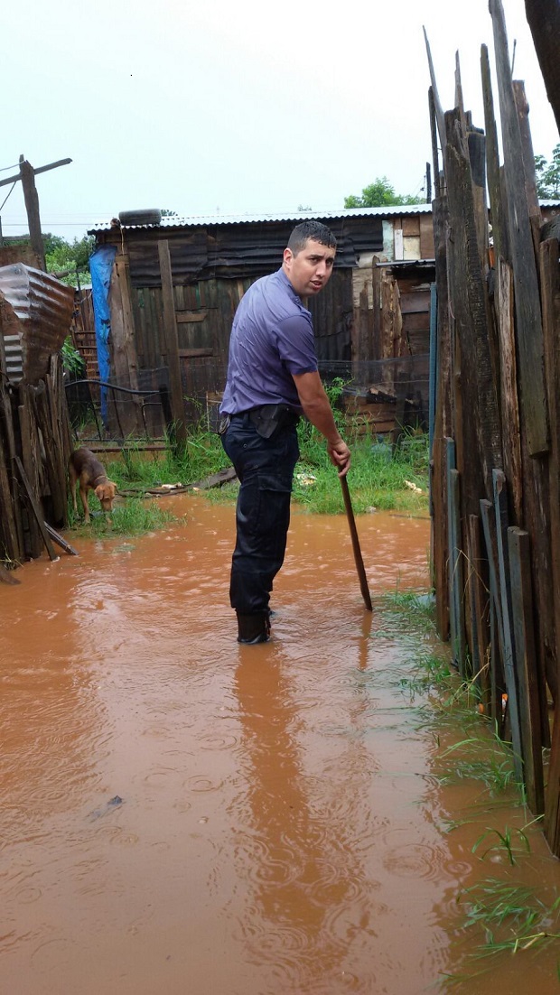 Las intensas precipitaciones de este domingo por la mañana y al mediodía volvieron a dejar en una situación complicada a las familias de escasos recursos que viven en la zona sur de la capital provincial, en Garupá y Candelaria. El director de la Oficina de Prevención Ante Desastres naturales (Opad) de la Municipalidad de Posadas, Favio Cabello, destacó que este domingo cayeron unos 80 milímetros de agua en tan sólo dos horas en la capital provincial. “La cantidad de lluvia representa el 50 por ciento de lo que debería llover en todo diciembre, rompiendo la estadística histórica. Además, advertimos a la población que muy probablemente haya un nuevo temporal el próximo miércoles 30”.Tras el fenómeno meteorológico, el Gobierno municipal desde sus diferentes áreas asistió en la tarde del domingo a unas 70 familias que fueron afectadas por las intensas lluvias y continúa trabajando en los barrios que requieren de obras. El intendente Joaquín Losada explicó que "se asistió con lo prioritario en este tipo de emergencias, colchones, chapas y módulos alimentarios. Afortunadamente, al igual que la tormenta del 24, no se lamentaron víctimas fatales".Desde el comité de crisis municipal informaron que los barrios relevados fueron San Onofre, Estepa, Latinoamérica, Don Pedro, San Jorge, San Lucas, Los Paraísos, El Piedral, El Porvenir l, Estepa, San Lorenzo, Gauchito Gil y las chacras 145, 233, 239 y 246.Fuentes policiales precisaron que personal de las comisarías 10ª y 14ª ayudaron en la evacuación de 24 familias del barrio Santa Cecilia, un sector muy humilde de condiciones precarias, y otras 16 de Los Paraísos. En el barrio Evita, una mujer de 24 años identificada como Elizabeth M., su hija de 2 años y el resto de su familia tuvo que ser rescatada de una casa totalmente inundada.Además, efectivos de la seccional Quinta ayudaron a 15 familias afectadas en Ñú Porá (Garupá) por el desborde de los arroyos en el momento de la tormenta, aunque por la tarde ya estaban regresando a sus viviendas. También en el barrio El Porvenir se desbordó el arroyo Estepa y ocho familias debieron abandonar sus precarias viviendas. En tres de ellas se procedió a sacar todos los enseres para evitar mayores pérdidas materiales.Candelaria también fue afectada por el temporal de la mañana y el mediodía de hoy. Según se supo, los barrios más alejados del centro de la localidad fueron los más afectados. Además, el subsecretario de Acción Social, Enrique Parra, informó que en los barrios Santa Cecilia y Vecinos Unidos de Posadas se les asistirá desde la cartera social provincial este lunes.