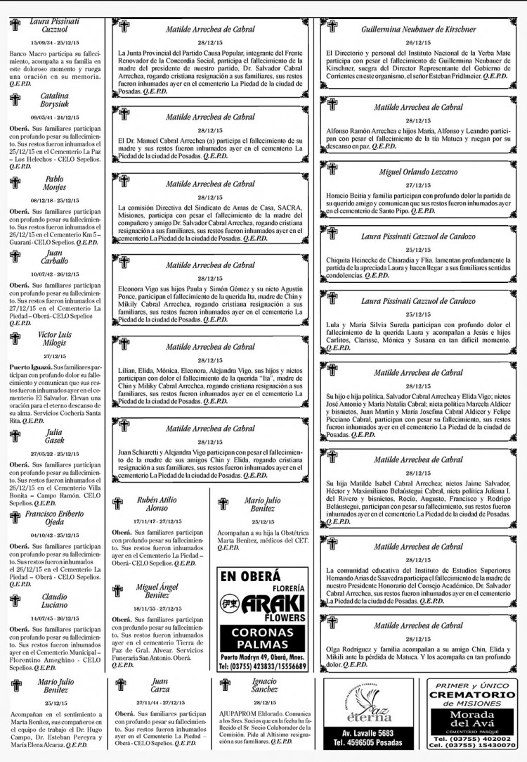 Fúnebres del martes 29 de diciembre de 2015