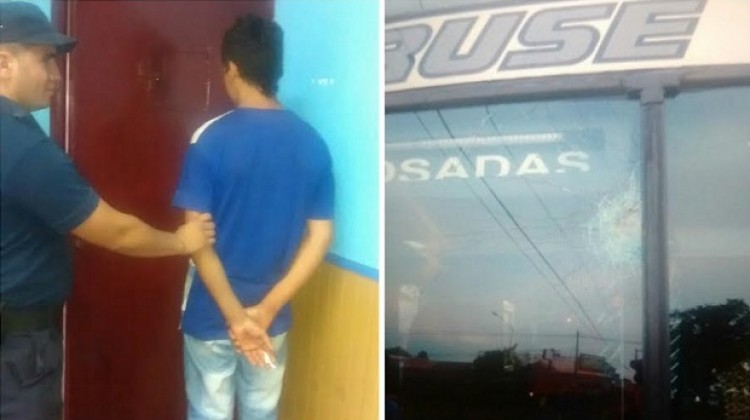El chofer Daniel R., de 50 años, denunció que cerca de las 5:00 de este domingo, iba al mando de un colectivo de la empresa Kruse hacia Posadas, con varios pasajeros a bordo, cuando imprevistamente una piedra impactó contra el parabrisas de la unidad.Tanto el conductor como su guarda llegaron a visualizar previamente a al menos un hombre que se llegó a cubrir el rostro con una remera y arrojó la piedra.En base a los datos aportados por el denunciante, personal de la comisaría de Garuhapé inició un rastrillaje por la zona y momentos después localizó a un joven que reunía las características descritas por el chofer.En consecuencia, se procedió a la detención preventiva de Pedro G. (18) en averiguación de hecho de daño.
