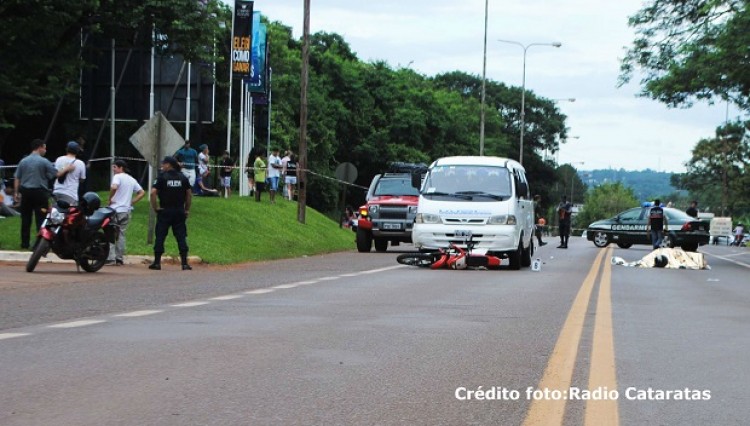 Un motociclista falleció este lunes, alrededor de las 16:45, en un accidente vial registrado sobre la ruta nacional 12 a su paso por Puerto Iguazú, más precisamente en el acceso al Casino local, según informó la Policía.Rubén Edgardo Figueredo, de 27 años, iba al mando de una Motomel 125 cc y, por causas que se investigan, colisionó con la parte trasera de un vehículo Jeep Troller con dominio brasileño, conducido por Sidney D.O. (49). A raíz del impacto, Figueredo cayó sobre cinta asfáltica y su moto fue embestida por una combi Kia, guiada por Eric D. Los tres rodados iban en mismo sentido, Aduana-Puerto Iguazú.El motociclista, domiciliado en barrio Villa Alta, dejó de existir prácticamente en el acto. Se notificó de la causa a los demás conductores y fueron secuestrados los vehículos.