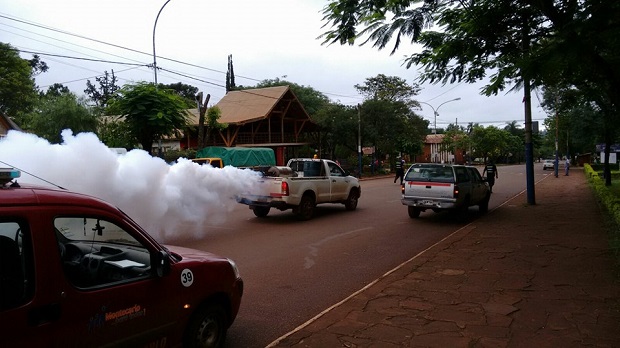 Desde el área de saneamiento ambiental y trabajando en conjunto con maquinaria pesada del Ministerio de Salud de la Nación realizan fumigaciones (termoniebla)  intensificándose de esta manera los trabajos de prevención y bloqueo contra el dengue en la ciudad de Montecarlo, Carlos Pelinski secretario de Seguridad Urbana del municipio resaltó "la conciencia que ha tomado el vecino, se los ve a todos colaborando, cortando el pasto de sus veredas y colaborando con las fumigaciones, hay que asumir que estamos en una situación crítica y que los vecinos tienen que colaborar, transmitimos a todos y cada uno de los vecinos de que estamos poniendo todos los esfuerzos para combatir a esta plaga".En esta tarea de prevención y bloqueo contra el dengue, trabajan incansablemente el gobierno municipal, articulados con la provincia y la nación, en esta semana se cuenta con un equipo de termoniebla de altísima potencia, del Ministerio de Salud de la Nación. "Hemos alertado a los vecinos a través de los medios locales que no deben preocuparse puesto que el producto que se utiliza para estas fumigaciones es un humo inocuo de una muy baja toxicidad", indicó Pelinski.