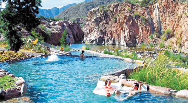 Enclavado en la Cordillera de Los Andes, inundando de belleza y sensaciones el entorno, el Parque de Agua Termal y Aventura Termas Cacheuta cautiva desde la primera impresión y, entonces, ya no hay retorno. Placer supremo, relax y distensión parecieran ser sus palabras mágicas, no obstante también la diversión y la adrenalina encuentran su espacio en este oasis situado en la provincia de Mendoza.El hotel termal fue, en su momento, una réplica de los tantos que existen en Europa. Esta epopeya argentina atrajo visitantes de todo el país y el continente, a poco de inaugurarse. Es que era uno de los viajes en tren más fantásticos, ya que unía la estación de Retiro, en Buenos Aires, con la propia villa de Cacheuta, como destino final. Las vías y lo que queda de aquella estación son testigos de que hubo tiempo que fue hermoso. Sin embargo, la explosión de visitantes se produjo cuando estallaron las guerras mundiales en Europa y cientos de argentinos que acostumbraban a utilizar los baños termales se recluyeron en este paraje, a 40 kilómetros de la ciudad de Mendoza.Una cómoda piscina semicubierta; una piscina acondicionada con agradables burbujas; una piscina para el disfrute seguro de los más chicos, todas a una temperatura promedio de 30º; además de las duchas masajeadoras, que actúan sobre el cuerpo produciendo un efecto relajante, y la característica serenidad del ambiente, logran un efecto que vence categóricamente al estrés. Lugar disfrutable a lo largo de todo el año, las Termas de Cacheuta, situadas a menos de un kilómetro de Potrerillos, cuentan en su predio con dos vaporariums, los cuales emanan vapores termales que actúan como desintoxicantes de la piel, ayudan al sistema respiratorio y producen efectos relajantes en el cuerpo.Churrasqueras y quinchos, perfectamente pensados para la comodidad de los visitantes, tientan a pasar el día en el predio; mientras los más inquietos se deciden a experimentar otras propuestas del complejo. Trekking, rappel, tirolesa, cabalgatas y rafting, integran el programa de actividades alternativas, capaz de llevar al visitante de la relajación más apacible a la aventura más extrema.Excelente infraestructura gastronómica, y servicios de hospedaje dentro y fuera del predio, este parque se ubica sobre la ruta provincial Nº 82, a sólo 38 kilómetros de la ciudad de Mendoza. Única en el paísEl agua termal de Cacheuta, por sus características, es única en el país. Es un agua de deshielo que se filtra a grandes profundidades y allí toma altas temperaturas y choca con la roca granítica del lugar, haciendo que se eleve nuevamente hacia la superficie. La temperatura oscila entre 35°C a 50°C en los distintos manantiales. Por su altísima temperatura disuelve y absorbe los minerales que encuentra en su camino, siendo intensamente mineralizadas. Buena vidaUn imperdible de este lugar es la cita para acompañar una jornada de relajación que llega al atardecer, cuando se realiza una degustación de vinos acompañada de las tradicionales empanadas mendocinas. Cacheuta es una de las salidas más recomendables, tanto para quienes desean mayor contacto con la naturaleza. El encanto y el confort de la montaña en Mendoza tiene parada obligatoria en este confín que siempre remite a otro lugar y tiempo: el del placer y la buena vida.