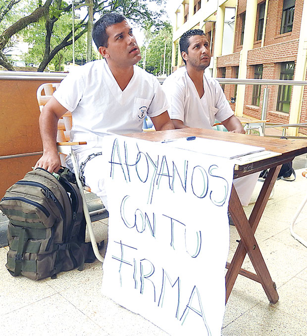 La decisión de encadenarse en el ingreso del Hospital Escuela de Agudos Ramón Madariaga de Ricardo Ferreyra y Jorge Antonio Godoy, en reclamo de mejores condiciones de trabajo y una definición sobre su situación laboral encontró a un grupo de enfermeros unidos, dispuestos a contar situaciones casi impensadas para cumplir con los pacientes y, nada más y nada menos que su juramento.“Preservar la vida por encima de intereses personales. Ser siempre profesional en la atención a pacientes. Mantener la armonía, discreción, el respeto y la cooperación con los integrantes del equipo de salud. Brindar trato amable y considerado a pacientes y a sus familiares. Respetar al paciente como persona única e indivisible en toda circunstancia. Prepararse continuamente, actualizarse y desarrollarse, si se considera que tiene en sus manos el don más preciado del hombre: la vida”, son sólo algunas de las premisas con las que se mueven estos profesionales de la salud y por las que es indispensable su presencia en los nosocomios, sin embargo hoy por hoy se entienden poco valorados.Es que los pedidos (porque dadas las características de lo que solicitan no puede hablarse de reclamos) son para asegurar la buena atención de los pacientes. “Termómetros, tensiómetros, guantes… son elementos de primera necesidad con los que muchas veces no contamos”, aseguran enfermeros autoconvocados.“Muchos colegas compraban cajas de guantes y los traían, gastaban dinero de sus bolsillos para seguir brindando la atención. Se organizaban vaquitas y las enfermeras compraban jeringas, barbijos o lo que faltara. Y esta situación se da porque el servicio de Farmacia funciona las 24 horas, pero al carecer de coordinador o jefe de Enfermería, en Farmacia no te hacían entrega de los insumos. Todo pasa por cuestiones normativas”, explicó Ricardo Ferreyra.Y añadió que “la atención al ser humano, a la persona que está a cargo de los enfermeros, nunca se dejó de brindar, diferentes áreas de atención, terapia intensiva, internación, emergencia, cuidados clínicos, nunca carecieron del servicio de Enfermería, siempre se buscó la manera de cumplir con el paciente, incluso con dos enfermeros por turno con más de 28 habitaciones y dos camas por pieza”.El enfermero mencionó además que “existe una normativa nacional que determina la cantidad de pacientes por enfermero, a mayor complejidad del paciente, mayor demanda de atención, por lo que en terapia intensiva, por ejemplo, se necesita un enfermero por cada dos pacientes. En terapia intermedia será un enfermero para tres pacientes, pero acá ocurre que un enfermero atiende trece o catorce enfermos, no se tiene en cuenta el nivel de complejidad, sin embargo incluso en condiciones infrahumanas, los enfermeros nunca dejaron de brindar atención”.Y a toda esta situación se suma lidiar “contra un modelo precario y represivo de trabajo, que en estos tiempos consideramos que es lo más retrógrado que hay, ya pasamos un proceso histórico donde este modelo falló, se demostró que es inefectivo, y lo quieren mantener”, aseguró Ferreyra.Y destacó que “el contrato que nos dieron el año pasado era por tiempo determinado, desde el 1 de enero al 31 de diciembre, el de este año es igual, con la novedad de que en este no figura el monto de sueldo a percibir por el trabajo a realizar, lo que nos parece gravísimo, porque no permite a los colegas estar al tanto de lo que van a cobrar ni intentar iniciar paritarias con la institución”.
