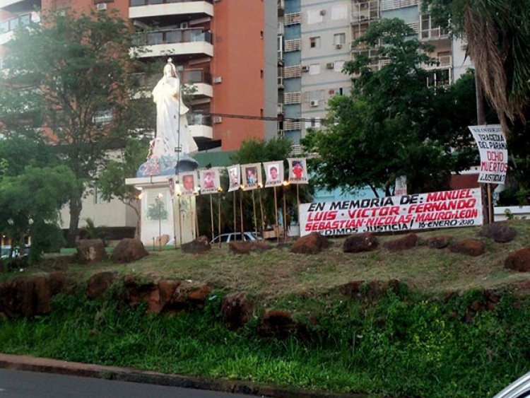 Al cumplirse hoy seis años de la Tragedia del Paraná, considerada la mayor fatalidad del deporte misionero y una de las más graves a nivel nacional, donde ocho nadadores -siete misioneros y un santafesino- murieron ahogados, familiares y amigos realizaron una misa. La ceremonia se realizó a las 10.30, en la Plazoleta de los Deportistas que se encuentra en la avenida Costanera, oficiada por el padre Gervasio Silva, párroco de la Capilla de Santa Rita. A los participantes se les solicitó que colaboren con elementos de limpieza que serán destinados a los afectados por las inundaciones en Entre Ríos.El caso espera en CasaciónEl 19 de diciembre de 2014 el Tribunal Oral en lo Criminal Federal de Posadas condenó a Hugo “Tyson” Alfonso a tres años de prisión y al prefecturiano Jorge Lezcano a cuatro años y medio.A más de un año de la condena, la Cámara Federal de Casación todavía no se expidió al respecto y probablemente la resolución se conozca recién en los primeros meses de este año.“En noviembre pasado fuimos a la Cámara, en Buenos Aires, para ver si había novedades, pero hasta ahora no hay nada”, explicó en diciembre pasado el abogado Rodrigo Bacigalupi, representante legal de las ocho víctimas e incluso familiar de uno de los deportistas que perdieron la vida.El Tribunal Federal de Posadas entendió que el organizador Alfonso (37) y el prefecturiano Jorge Lezcano (45), por entonces responsable del Puerto Posadas, incurrieron en el delito de “homicidio culposo calificado por el número de víctimas”. En este sentido, indicó que debieron haber advertido del riesgo que representaban la presencia de las barcazas sojeras en adyacencias del circuito y el temporal.