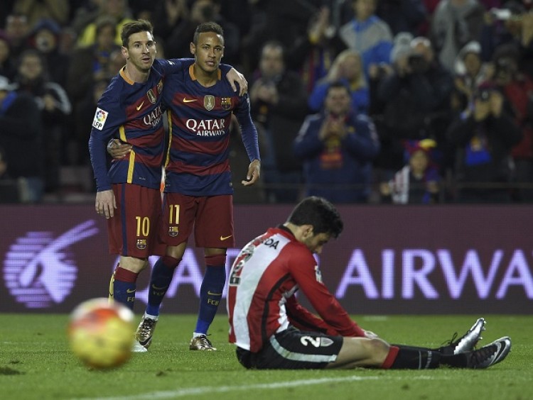 El Barcelona (2º) aplastó al Athletic de Bilbao (6-0), con un gol de Lionel Messi -luego reemplazado por precaución ante "una ligera sobrecarga", según definieron desde el club- y tres tantos del uruguayo Luis Suárez, este domingo en la 20ª fecha de la Liga española, con lo que pudo mantenerse a dos puntos del líder Atlético de Madrid, que había ganado poco antes por 3 a 0 en su visita a Las Palmas.Todo continúa igual en la cabeza de la Liga, con el Atlético con dos puntos de margen sobre el Barça y con cuatro de ventaja sobre el Real Madrid (3º), que goleó 5-1 al Sporting de Gijón.Lionel Messi (a los 7 de penal), Neymar (31), un triplete de Luis Suárez (47, 69, 82) e Ivan Rakitic (62) firmaron los tantos en la fiesta azulgrana contra el Athletic (9º).El astro uruguayo se colocó como líder en solitario de la tabla de goleadores de la Liga española, con 18 tantos, dos más que los 16 de su compañero Neymar y de dos hombres del Real Madrid que lograron sendos dobletes este sábado: Cristiano Ronaldo y Karim Benzema.El Barça respondió con este triunfo a la victoria 3-0 del líder, el Atlético, en su viaje a Las Palmas (16º).El equipo de Diego Simeone se adelantó en la primera parte con un tanto del brasileño Filipe Luis (17) y luego sentenció con un doblete del francés Antoine Griezmann (68, 89).Por su parte, el Real Madrid regaló un nuevo triunfo con goleada a su público, esta vez por 5-1 ante el Sporting de Gijón (19º), en el segundo partido con Zinedine Zidane como entrenador, aunque fueron sustituidos por lesiones Gareth Bale y Karim Benzema.Fuente: Noticias Argentinas