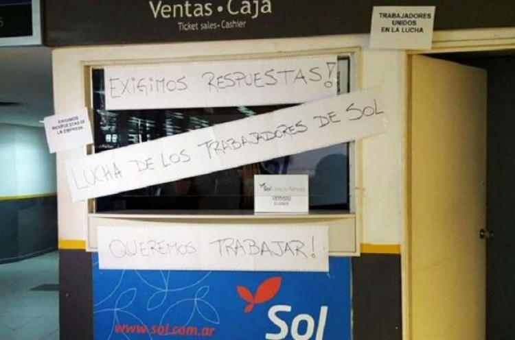 Trabajadores de Sol volverán a reunirse este lunes por la tarde con empresarios de la línea aérea en el Ministerio de Trabajo, para definir el destino de los más de 300 empleados de esa compañía, que el viernes último anunció su  quiebra.     Luego de que ese día se concretara la primera reunión en la cartera laboral, el conflicto pasó a cuarto intermedio hasta este lunes a las 14:30.     El Ministerio de Trabajo ya intimó a la empresa a reincorporar al personal, ya que sostiene que los telegramas de despidos son ilegales, mientras los gremios denuncian que la compañía continuó con la venta de pasajes hasta el jueves.Durante el fin de semana, los empleados de Sol volvieron a protestar en Aeroparque, bajo la consigna ´queremos trabajar, tal como lo hacen desde que se enteraron del cierre de la  empresa.     En ese escenario, la Asociación Argentina de Aeronavegantes (AAA), que representa a los tripulantes de cabina de toda la Argentina, sostuvo que concurrirá a la segunda audiencia junto con otras organizaciones gremiales del sector aeronáutico.   El Secretario general del sindicato, Juan Pablo Brey, sostuvo: "Nos parece bien terminar con los contratos viciados de corrupción y poco transparentes, pero ello no debe implicar que los trabajadores paguen políticas erradas".   "El gobierno debió tener una solución anticipada antes de dar de baja el contrato vinculante que desató todo", consideró.   Subrayó, además, que reclamarán que "toda la dotación de SOL sea absorbida en forma inmediata dentro de los planes de expansión que ya tienen en marcha Aerolíneas Argentinas y LAN", mientras evaluó: "Esa es la lucha que se viene".     En tanto, el secretario gremial de Aeronavegantes, Alejandro  Kogan, resaltó: "Nosotros tenemos involucrados en forma directa más de 30 tripulantes".   "Ahora el mensaje que nos deja SOL debe ser analizado cuidadosamente, acá también hay desinteligencias de los funcionarios de Aerolíneas Argentinas que responden al gobierno porque intervinieron unilateralmente y precipitaron todo", fustigó.   "Ellos deben intervenir también para que ahora se cumpla el pago total de las indemnizaciones del personal y la reubicación de los trabajadores", enfatizó.  Fuente: Noticias Argentinas