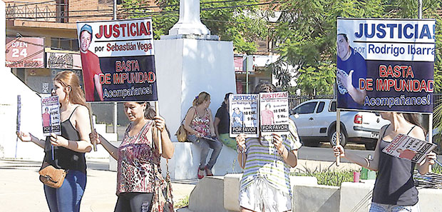 Poco después de las 9 de la mañana del lunes, un grupo de personas se congregó en el mástil de la avenida Mitre e inició la marcha pacífica para pedir el esclarecimiento del doble homicidio de Sebastián Vega (35) y Rodrigo Ibarra (27), acribillados a balazos el 17 de diciembre en la chacra 97.La convocatoria a dicha marcha inició dos semanas atrás, pero el número de presentes no superó las diez personas. “Vinieron muy pocos, más allá de que nosotros convocamos a muchas amistades. Sin embargo, varios se comunicaron y nos dijeron que tienen miedo, saben que el asesino sigue suelto. Incluso familiares nuestros no quisieron venir, tienen temor. Nos dijeron que nos apoyan pero tienen hijos y no se pueden exponer. Y si el asesino sigue suelto les van a ver la cara y creen que nos van a mandar a matar a todos”, explicó Bárbara Vega, mientras sostenía un afiche donde se veía el rostro de su hermano y resaltaba una frase: “Justicia”. “Pero yo estoy segura de algo: No tengo miedo. Pienso hacer carteles y seguir marchando pidiendo justicia”, aseguró. Cuando el reloj marcó las 9.25, en silencio los carteles se elevaron. Los rostros de las víctimas resaltaban en los panfletos de fondo blanco. Los presentes caminaron por avenida Mitre rumbo al Juzgado de Instrucción Penal III de calle Santa Fe casi Rivadavia, donde fueron atendidas por el Magistrado Fernando Verón. En diálogo con PRIMERA EDICIÓN, Carmen, madre de Sebastián Vega, indicó que solicitó al magistrado los avances de la investigación y los resultados de la autopsia. “Todavía no sé cuántos tiros recibió mi hijo. Quiero saber cómo murió Seba. Quiero respuestas, quiero saber a qué hora murió”.Bárbara fue más directa y señaló “la Justicia no nos dio los datos que tranquilicen a mi familia por lo que vamos a poner un abogado querellante. No nos dan esperanzas, dicen que no tienen pruebas y que es un ajuste de cuentas”.Un testimonio clave y una fotoBárbara señaló que en la causa por el doble homicidio no se tuvo en cuenta un testimonio que a su criterio, considera clave. Se trata de un menor quien manifestó que días antes del crimen, el supuesto autor intelectual del hecho lo contactó para consultarle sobre los lugares que frecuentaba una de las víctimas. “Hay un testimonio que no fue tomado, es una persona que cuenta todo lo que le preguntó el asesino días antes de que maten a mi hermano estoy esperando que lo citen. Esa persona sabía dónde estaba mi hermano por las preguntas que le hizo”, sentenció la joven. La hermana de Sebastián Vega, también aseguró que cuenta con una fotografía del rostro de uno de los supuestos sicarios que participaron en el doble homicidio. Contó a PRIMERA EDICIÓN, que la imagen la recibió desde un grupo de Facebook. “Me mandaron fotos de uno de los sicarios. En ese mismo grupo hay gente que me asegura que la Policía Federal está involucrada, la información la recibí en un mensaje sin nombre ni apellido desde el Facebook”.En febrero, nueva marchaEl miércoles 17 de febrero la familia Vega volverá a realizar una marcha. Esta vez marcaron un punto de encuentro distinto “vamos a reunirnos frente a la casa del hombre que denunciamos como el autor intelectual de los asesinatos, es decir, en avenida General Roca y Mutinelli. Desde ese lugar marcharemos hasta el juzgado”, adelantó Bárbara. Y pidió “que aquellas familias con casos similares nos acompañen, se unan a nuestra lucha y marchemos por justicia. Les pido que se sumen, así todos tenemos una respuesta y nuestros familiares al fin descansarán en paz”. Para la próxima marcha tiene pensado además salir con afiches que lleven el rostro del asesino “si no encuentro la justicia que pido, porque aporté datos, realizaré carteles, esta vez con la cara del asesino de mi hermano y de Rodrigo”.