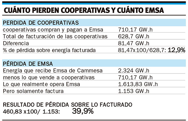 El Sindicato de Luz y Fuerza intentó desmentir una investigación publicada el domingo en PRIMERA EDICIÓN donde se hacía referencia a las pérdidas millonarias que tiene la empresa y que pagan los usuarios, sin embargo, entre sus propias afirmaciones, los responsables del comunicado “a la opinión pública”, terminaron confirmando los datos de este Diario y, además, tomando la extraña postura para un sindicato de defender a la patronal.En el informe del domingo se afirmó que en 2014 Emsa operó 1.640 GW.h (Luz y Fuerza dice 1.613,83) y que solo facturó 1.153 GW.h porque el resto se pierde por ineficiencia y por maniobras “desleales” de algunos empleados de la empresa afiliados al sindicato. La pérdida equivale al 28% sobre la energía operada y un 40% sobre la energía facturada a usuarios (no cooperativas).Ese porcentaje de pérdida, con variaciones mínimas, se mantiene año a año y genera grandes pérdidas económicas a la empresa, que ahora intenta recuperar con un tarifazo de 35% a lo usuarios.El gremio respondió en una nota que hizo llegar el miércoles a este diario afirmando que solamente se pierde el 19,7% porque la empresa facturó por 1.864,1 GW.h. Pero los “avezados” ingenieros de la “Secretaría de Asuntos Energéticos” del gremio tuvieron la “viveza criolla” de incorporar en el cálculo la energía que Emsa le vende a las cooperativas, que en realidad debería quedar afuera del cálculo porque las cooperativas tienen otro porcentaje de pérdida.Primer punto: el gremio reconoció una pérdida millonaria porque el 19,7% de pérdida en el año 2014 significó que la empresa dejó de facturar cerca de 130-140 millones de pesos.Segundo punto: Para calcular la pérdida de Emsa se debe tomar lo que la empresa operó (recibió de Cammesa, que es la distribuidora nacional) y lo que facturó, sacando del cálculo lo que manejan las cooperativas porque éstas tienen su propia pérdida. Haciendo esta diferenciación, el 19,7% de pérdida se transforma en el 40%.Tercer punto: para analizar la eficiencia de Emsa como empresa se debe apartar lo que revende a las cooperativas eléctricas, que son rehenes porque no tienen otro proveedor y pagan un costo arbitrario. Por ejemplo, en 2014 el MW-hora promedio anual arrojó un costo (para Emsa) aproximado de $75 por cada Megavatio-hora, pero a las cooperativas se les revendió a prácticamente el doble de ese precio ($150 por cada MW-hora). Este dato es desconocido por muchas cooperativas y fue confirmado por un alto directivo de la empresa.Cuarto punto. Tomando los números consentidos por el Sindicato, en su “intento de desmentida”, se llega a la conclusión de que la empresa perdió el 40% de la energía que facturó y 28% de lo que operó. En el año 2014 Emsa recibió 2.324 GW.h, de esa cantidad le revendió a las cooperativas 710,17 GW.h, por lo tanto operó 1.613,83, pero solo facturó 1.153, quiere decir que perdió 460,83 GW.h, significa el 28% de lo que operó y 40% de lo que facturó a usuarios (no cooperativas).Para completar su “respuesta”, la nota firmada por Julio “Cachilo” Rodríguez y Santiago Javier Kloster termina defendiendo a la empresa al afirmar que “Emsa tiene un sector específico que inspecciona y recibe todas las denuncias de hurto y gracias a ese trabajo las pérdidas tienen una tendencia decreciente”.