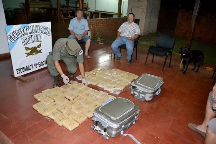 Efectivos de Gendarmería Nacional incautaron 48 kilos 890 gramos de marihuana que eran transportados ocultos en dos valijas trasladadas por un ómnibus de larga distancia, procedente de Puerto Iguazú con destino final la terminal de Retiro (Ciudad Autónoma de Buenos Aires). El hecho fue resultado de un control llevado a cabo sobre la Ruta Nacional N° 12, a la altura de Montecarlo. Un pasajero quedó detenido.Ocurrió el jueveso, cuando efectivos del Escuadrón 10 “Eldorado” a la altura del kilómetro 1518 de la Ruta Nacional N°12, en cercanías al paraje “Los Paraísos”, detuvieron la marcha de un transporte público de pasajeros para su respectivo control. Al realizar la inspección, los uniformados detectaron en la bodega, dos equipajes con un peso excesivo y que no coincidía con las dimensiones, asimismo emanaban un intenso olor. Ante los indicios de estar frente a un delito, se solicitó la colaboración del guía y su perro antinarcóticos “Negra” que al reaccionar confirmó las sospechas de los gendarmes. Con la presencia de testigos, los funcionarios requisaron las maletas encontrando 63 paquetes acondicionados tipo “ladrillos”, que sometidos a pruebas de narco test respondieron positivo para cannabis sativa (marihuana) arrojando un peso total de 48 kilos 890 gramos, que fueron decomisados. El Juzgado Federal de Eldorado dispuso la detención del ciudadano y la incautación de la totalidad del estupefaciente como demás elementos de interés.