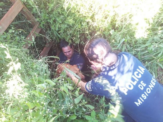 Efectivos de la comisaría de San José acudieron al llamado desesperado de una vecina del barrio Pindapoy de San José, quien manifestó que dos canes se cayeron a un pozo de importante profundidad en una zona de viviendas en construcción.Una vez en el lugar, los uniformados constataron que los canes estaban en shock y atrapados en el orificio, a casi 3 metros de profundidad.Minutos después ambos perritos fueron rescatados y devueltos a sus propietarios.