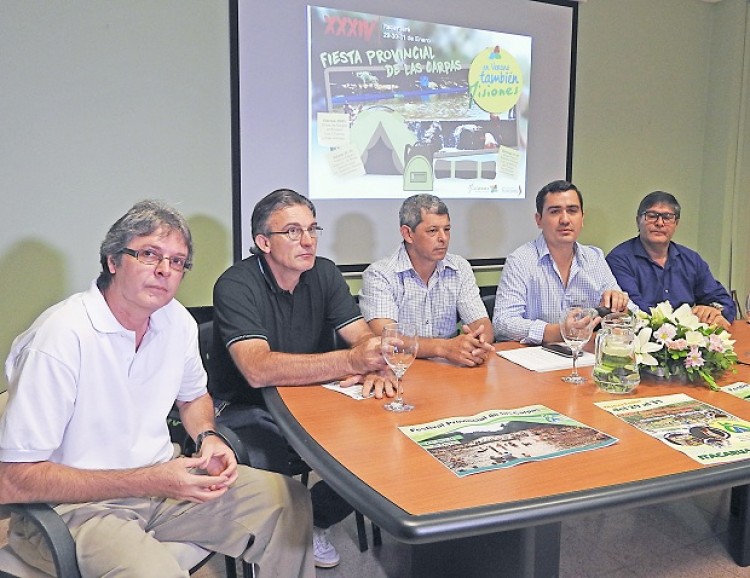 La presentación de la XXIV edición del Festival de las Carpas, a desarrollarse en la localidad de Itacaruaré entre el 29 y el 31 de enero, se realizó este lune en el Ministerio de Turismo.Estuvieron el ministro de Turismo, José María Arrúa; el intendente de Itacaruaré, José Alberto Álvez, y el presidente de la comisión organizadora del festival Daniel Tymcziszyn, quienes anunciaron oficialmente que el tradicional “acampe” arrancará el viernes y se extenderá hasta el domingo. En el acto de apertura actuarán varias bandas locales y coronarán la noche Los Charros y un show de fuegos artificiales. Mientras que en el segundo día, habrá más artistas de la región, entre ellos Roberto Edgar, Batería Legal, el DJ invitado Guillermo Atencio y además se realizará la elección reina. En tanto que en el cierre del domingo se vivirá a pleno con la música de bandas de la región.Las malas condiciones del tiempo que se dieron en la primera quincena de enero impidieron que la Festival de las Carpas se desarrolle en una fecha previa, pero el organizador afirmó que ya “está todo listo” y que “el predio se encuentran en condiciones y con todas las comodidades para los que quieran venir a disfrutar un buen fin de semana”.Arrúa además de invitar a las personas destacó el importante marco de turistas que llegan a la provincia. “En el balance general, en la segunda quincena de enero tuvimos muchos visitantes en la provincia, sobre todo destacamos el flujo de visitantes en la Zona Centro”, dijo.Tymcziszyn recordó que “como todos los años, generalmente en los primeros días de enero, se realiza el festival, pero este año se nos pasó un poco por las malas condiciones climáticas que nos jugaron una mala pasada. Se invirtió mucho dinero para poder poner en condiciones el lugar. Estamos con equipos de médicos y ambulancia en el lugar para prevenir cualquier emergencia y además contamos con todos los servicios necesarios”.Álvez agregó que el municipio “hizo mucho para poner en condiciones el predio. Fueron elevados los costos y llevó un tiempo en reparar, pero finalmente pudimos poner el parque en condiciones”.