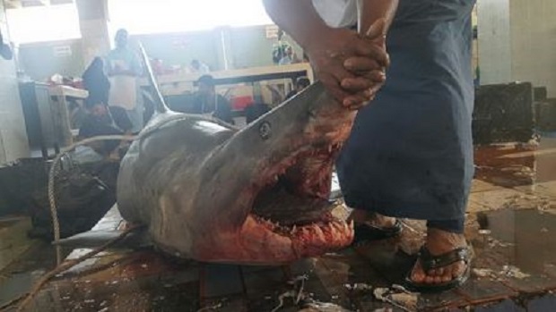 CON VIDEO: Gran tiburón cae sobre barco pesquero y lo matan a golpes