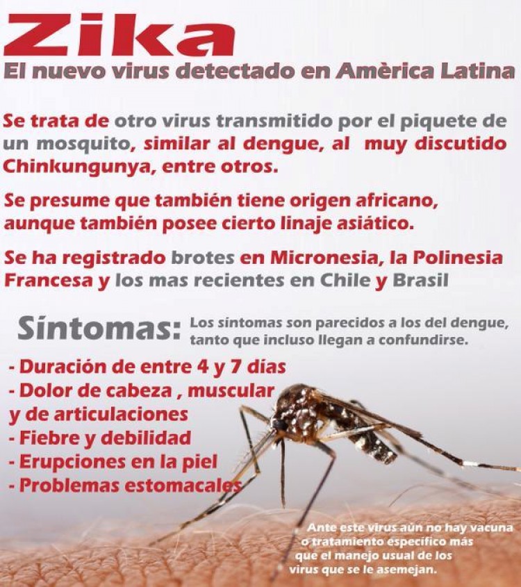 En el único caso detectado hasta el momento en la Argentina, el virus fue contraído en Colombia, entre diciembre y enero. Se trata de una joven colombiana de 23 años que vive en Argentina, y que había viajado durante los primeros días de enero a su país de origen, tuvo fiebre y cuando regresó se enteró que toda su familia de allá había tenido zika.La joven fue internada este miércoles en el Hospital Gutiérrez y el infectólogo pediatra y jefe del Departamento de Medicina del nosocomio, Eduardo López, explicó que la paciente "llegó asintomática y con bajo riesgo de contagio" por lo que consideró que "no estaba en el período epidémico y no estaba en riesgo de comenzar un ciclo" de circulación de la enfermedad."Estuvo aislada en su domicilio y ahora ya hace su vida normal por lo que su caso no aumenta el riesgo de circulación pero sí es para mirar con atención", señaló López ante la prensa.A la joven se le realizaron los estudios de laboratorio y se espera que entre mañana jueves y el viernes este la confirmación oficial sobre si tenía o no el virus.El otro caso que se analiza se detectó en la provincia de Neuquén y es el de un hombre que se fue de vacaciones a Colombia y fue picado por un mosquito infectado, por lo que contrajo el virus de zika estando en ese país.Se trata de José Luis Canovas quien, según informó la prensa local, se percató de la situación cuando llegó a su provincia, fue al médico de inmediato, y ya se recupera favorablemente.    En diálogo con la radio LU5 de Neuquén, Canovas contó que visitó la isla de San Andrés en diciembre pasado y en el lugar había un brote importante de zika."Por más repelente que usabas, los mosquitos te devoraban igual. Cuando llegué a Neuquén me broté, es un brote superficial, muy chiquito como un sarpullido en los brazos y me dolían mucho la cabeza y los ojos. Fui al hospital, expliqué todo y la doctora se puso a averiguar", contó.Tras estar ocho días en reposo y con un analgésico, el hombre se encuentra en recuperación: "Lo único que podes tomar es paracetamol y esperar y se va solo".En tanto, el director nacional de Epidemiología del Ministerio de Salud, Jorge San Juan, recomendó este miércoles a quienes viajen a lugares afectados usar repelentes.Si bien aclaró que la Argentina "no tiene circulación del virus zika" en lo que va del año fueron notificados otros tres casos: uno en Córdoba sin antecedente de viaje, y dos con antecedentes de viaje a Brasil de los cuales uno residía en Santa Fe y otro en Córdoba, pero ninguno tuvo resultados positivos.El zika es una enfermedad transmitida por el mosquito Aedes aegypti, el mismo vector del dengue y de la chikungunya. "Los síntomas pueden ser fiebre y dolor de ojos, cabeza, músculos y articulaciones; náuseas y vómitos, cansancio intenso, aparición de manchas en la piel, picazón y sangrado de nariz y encías, pero también puede cursar en forma asintomática", explicó San Juan."En Brasil hubo un incremento de bebés con microcefalia que al estudiarse a las madres se descubrió que habían tenido zika durante el embarazo, principalmente en el primer o segundo trimestre", agregó.El Ministerio de Salud de la Nación emitió un comunicado en el que alertaba a las mujeres embarazadas considerar el riesgo de viajar a países como Brasil, Colombia, El Salvador y Panamá, con circulación del virus y extremar las medidas de cuidado como el uso de repelente cada cuatro horas en caso de viajar."Por esto es que aunque no tengamos casos autóctonos hay que estar alerta a los síntomas, no automedicarse y consultar al médico ante cuadro febriles o cefaleas, porque en la región sí existe circulación del virus", se indicó en el comunicado.Los síntomas de este virus se presentan en general de forma moderada o aguda después de un período de incubación de 3 a 12 días, e incluyen fiebre, conjuntivitis no purulenta, dolor de cabeza, dolor de cuerpo y en articulaciones (principalmente manos y pies), decaimiento, sarpullido e inflamación de miembros inferiores.Esos síntomas duran entre 4 y 7 días y pueden ser confundidos con los del dengue y la fiebre chikungunya, aunque también puede ser asintomática.Fuente: Agencia de Noticias NA