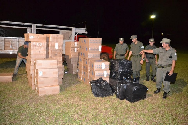Efectivos de Gendarmería Nacional incautaron este jueves una gran cantidad de cigarrillos que aparentemente tenían como destino la República Federativa del Brasil.El hecho ocurrió en inmediaciones del paraje "El Saltiño", correspondiente al departamento misionero de 25 de Mayo, donde se secuestraron un total de 32.500 atados de cigarrillos sin el correspondiente aval legal de ingreso al país. Efectivos de la seccional de Alba Posse dependiente del Escuadrón 9 de Oberá efectuaban un patrullaje terrestre cuando notaron como dos camionetas ingresaban hacia la costa del Río Uruguay por una zona y en un horario poco habitual.Esta situación alerto a los uniformados que se dirigieron hacia el lugar, motivando la fuga de los rodados gran velocidad, efectuando maniobras peligrosas.Los gendarmes llevaron a cabo un rastrillaje por la zona encontrando 65 cajas de cigarrillos de procedencia extranjera, totalizando 3.250 cartones alcanzando un valor que asciende a 780.000 Pesos.Aparentemente, la mercadería habría sido dejada en el lugar con el objeto de ser trasladada vía fluvial a la República Federativa del Brasil.Intervino la Fiscalía Federal de Oberá, quien dispuso la incautación de la mercadería que se encontraba en infracción a la Ley 22.415 “Código Aduanero”.