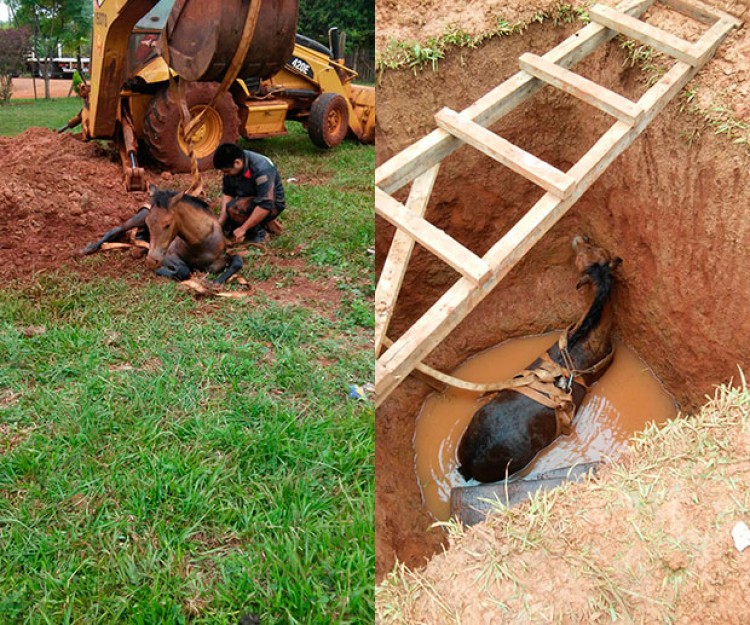 En las últimas horas personal de la comisaría de Candelaria, junto a bomberos voluntarios de la citada localidad rescataron a un caballo que había caído en un pozo ciego.Luego de varios minutos y asistidos con una retroexcavadora lograron rescatar sano y salvo al animal, luego de examinarlo el veterinario diagnosticó que el animal sólo había sufrido algunas excoriaciones ambos tobillos y rodillas.