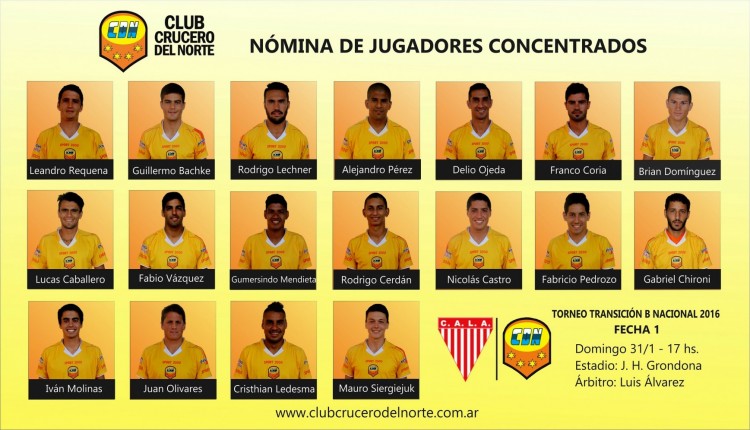 Crucero del Norte pone primera este domingo de cara a una nueva ilusión. Desde las 17 hará su debut en la B Nacional, tras el descenso de Primera A, con el claro objetivo de volver lo más pronto posible a la máxima categoría del fútbol argentino.La nueva presentación en la segunda categoría en importancia en el ámbito nacional será en calidad de visitante y ante Los Andes.El partido se jugará en la cancha de Arsenal, en Sarandí; y no en Lomas de Zamora. El motivo se debe a que el año pasado hubo incidentes en el reducto donde el “milrayitas” hace de local, en el partido ante Brown de Puerto Madryn, por lo que dicho estadio fue suspendido.El partido ante Crucero del Norte se jugará a puertas cerradas, pero se podrá ver por DeporTV. El juez del choque será Luis Alvarez.El conjunto de la tierra colorada se presentará en Buenos Aires con varias novedades respecto a su participación en 2015 en Primera.La primera de ellas es su flamante DT: Miguel Ángel Salinas. Un “viejo conocido de la casa” que toma la conducción del “Colectivero” tras el alejamiento de Sebastián Pascual Rambert, en plena pretemporada.Otra de las novedades son las once caras nuevas: Leandro Requena (arquero-viene de Santamarina de Tandil), Ignacio Arce (arquero-viene de Atlético Paraná); Franco Coria (defensor-viene de Sarmiento de Junín), Delio Ojeda (defensor-viene de San José de Oruro, Bolivia), Guillermo Sotelo (defensor-viene de Huracán de Parque Patricios); Nicolás Castro (volante-viene de Unión de Mar del Plata), Juan Gáspari (volante-viene de Santamarina de Tandil), Fabricio Pedrozo (delantero-viene de Almagro), Cristhian Ledesma (viene de Deportivo Quito, Ecuador), Leandro Paez (delantero, Atlético Sastre) y Juan Manuel Olivares (delantero-viene de Los Andes). El plantel se nutre, además, con nueve jugadores que quedaron de la temporada 2015. Los mismos son: Alejandro Pérez; Rodrigo Lechner; Fabio Vásquez; Gabriel Chironi; Gabriel Ávalos; Gumersindo Mendieta, Lucas Caballero; José Dujaut y Pablo Stupiski (éstos tres últimos de inferiores, pero que ya fueron parte del equipo y con partidos y goles en Primera, inclusive).La lista de 33 jugadores se completa con juveniles de la institución: Guillermo Bachke (arquero); Brian Domínguez; Matías Benítez; Víctor Cabañas; Emanuel Tamis y Enzo Godoy (todos defensores); Cristian Almirón; Iván Molinas; Nahuel Bentos Augusto Khon; Maximiliano Batitas (todos volantes); Damián Rivas y Mauro Siergiejuk (delanteros).Pretemporada compartidaEl equipo misionero realizó una fuerte pretemporada en sus instalaciones en Garupá. La primera parte a las órdenes de Rambert y su cuerpo técnico, pero tras su partida hace doce días se hizo cargo “Pico” Salinas junto a un equipo formado en su mayoría por valores misioneros tal es el caso de Carlos Marczuk (exjugador del Club), quien es su ayudante de campo; Jorge Rodríguez, preparador de arqueros; Domingo Rosas (ya estuvo en la institución) es preparador físico y Daniel Jara, que continúa como preparador físico.   Además realizó un par de amistosos en su estadio ante Cerro Porteño, de la Primera del fútbol de Paraguay, ante El Brete de la Liga Posadeña (participa en el Federal C); Sportivo Patria, de Formosa que jugará el Federal A y visitó a Sarmiento, en Resistencia (Chaco), otro equipo que jugará el Federal A.  Crucero del Norte arranca una nueva ilusión la cual está trazada en un claro objetivo: su regreso a Primera. Así, su DT Salinas pondrá en cancha un equipo mixturado con cuatro valores de la temporada anterior (Pérez, Lechner, Vázquez y Chironi) y lo completa con los nuevos valores que llegaron apostando a un clásico 4-4-2.