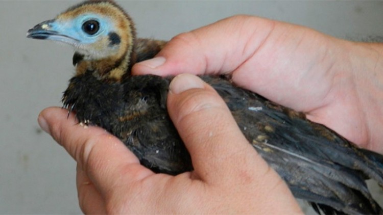 La pareja reproductiva (Pipile cumanensis gravy), proveniente del Zoológico de la ciudad de La Plata, ingresó a “La Granja” en agosto del 2015, y pocos días atrás se logró el primer pichón que está en el sector de veterinaria, separado del resto de las aves, recibiendo cuidados especiales para su supervivencia. En su dieta diaria, se incluyen, además de alimento balanceado, suplementos con proteínas (entre ellas de origen de larvas de insectos), y frutas picadas.El tipo de alimentación es “ad libitum”, es decir, a disposición durante todo el día. Además se lleva a cabo el control localizado de temperatura y luz, y se le realiza un plan sanitario desde los 20 días de vida, centrándose en la desparasitación. Hasta los tres meses, fecha en la cuál cambia el plumaje, no puede saberse el sexo de este tipo de aves. En ese momento se le realizará un análisis que lo determine, y así progresar en un plan reproductivo posterior. Todo esto teniendo en cuenta que el ejemplar será socializado a comienzos de la primavera. Cabe aclarar que la Granja La Esmeralda participa del Programa de Cría en Cautiverio, debido a su experiencia en la cría de crácidos amenazados, y recibe el apoyo del Centro de Cría más grande del mundo, especializado en estas aves que es CraxPerú. Actualmente se ha convertido en uno de los pocos centros del país que posee esta especie y que empezó a reproducirla.La cuyuya La cuyuya habitó la Argentina hasta la década del 80?, fecha desde la cuál no se la reportó más, y se la dio por extinta.Los veterinarios especialistas en rescate y recuperación resaltaron la importancia de este nacimiento, en vistas a su supervivencia como especie. Según expresaron los veterinarios, “probablemente, en nuestro país, la destrucción del hábitat y la caza furtiva fueron las causas de extinción de esta especie. Hoy, su supervivencia depende de un esfuerzo multidisciplinario que implica un programa de cría, la protección y recuperación urgente de las áreas de bosque, y el esfuerzo de concientizar a las comunidades locales.” La cuyuya, también conocida como pava fantasma o pava campanilla , es un ave galliforme de la familia Cracidae que se encuentra en actualidad en los bosques húmedos, desde Colombia y Venezuela, hasta Bolivia. Según la Unión Internacional para la Conservación de la Naturaleza (UICN), se encuentra en estado Amenazado.Lo característico de esta especie es que posee una gran zona implume en el rostro, lo que le dio así el nombre de pava fantasma. Se alimentan de frutos. Vive en la parte alta o media del bosque y rara vez está en el suelo. Hace el nido en la parte alta y densa, y la hembra pone de 2 a 3 huevos. Mide unos 70 cm de longitud; su plumaje es negro con las puntas de las alas y cresta blancas; el pico es blanco en la base y azul en la punta; la garganta es delgada, azul; las patas son rojizas.Fuente: EntreRíosYa