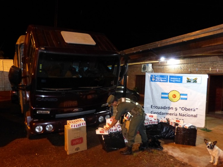 Gendarmes de la sección Aristóbulo del Valle -dependiente del Escuadrón IX Oberá- desplegados sobre la ruta provincial 7 controlaron un camión Ford Cargo que transportaba mercadería de diversos rubros, pero ocultos fueron hallados cinco cajas con cartones de cigarrillos de procedencia extranjera, totalizando 2.500 atados.Continuando con los operativos, los funcionarios divisaron minutos más tarde que un vehículo Iveco Daily se aproximaba al estacionamiento de una empresa de construcciones.Los uniformados se dirigieron al lugar, constatando que en el rodado se ocultaban tres cajas de cigarrillos de procedencia extranjera. Un total de 1.500 atados fue decomisado.Intervino el Juzgado Federal de Oberá, quien dispuso la detención de ambos conductores como así también la incautación de la mercadería que se encontraba en infracción a la ley 22.415 o Código Aduanero.