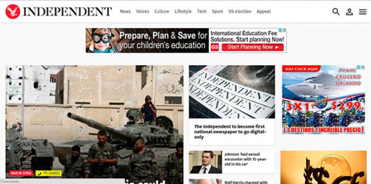 La última edición impresa del diario aparecerá el 26 de marzo, unos 30 años después de su nacimiento, en 1986, anunció en un comunicado la empresa propietaria, ESI Media, de la familia ruso-británica Lebedev."La industria de los diarios está cambiando, y ese cambio está siendo conducido por los lectores. Ellos nos muestran que el futuro es digital", dijo en el comunicado Evgeny Lebedev. "Esta decisión preserva la marca Independent", agregó. The Independent es el primer gran diario nacional británico que da este paso, ya tomado por el diario español Público o el francés La Tribune, que sale en papel una vez a la semana.La edición electrónica de The Independent tiene 70 millones de usuarios únicos mensuales, afirma ESI Media. The Independent tiene una popular versión resumida que se llama "i", y se vende por 40 peniques -un tercio aproximadamente de los diarios normales-, y que ESI venderá a la empresa Johnston Press, se anunció en el mismo comunicado.ESI conservará el Evening Standard, un diario vespertino gratuito que se reparte sobre todo a la entrada del metro y que la familia Lebedev compró en 2009. Según el comunicado, este diario tuvo en 2015 unos beneficios de 5 millones de libras.Fuente: Agencia de Noticias AFP/NA