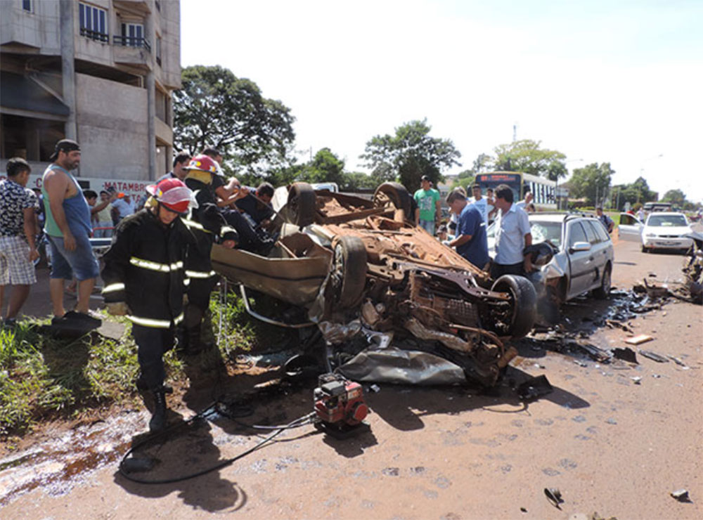 La fuerza de la colisión habría lanzado hacia atrás al coche que conducía Prestes, por lo que el VW Gol Country que lo seguía no pudo esquivarlo y se lo llevó puesto, dejándolo en posición invertida.