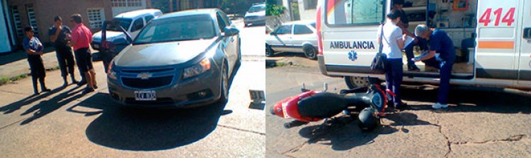 Con tantos accidentes que ocurren a diario debería ser un hecho que las personas tomen conciencia y sea cada vez más prudentes, pero indudablemente no siempre lo que debería ser lo es.En circunstancias que son materia de investigación, un Chevrolet Cruze, al mando de José Carlos B, de 43 años, colisionó con una motocicleta Kenton 110 cc. frente a la emprese Bencivenga, sita en López y Planes casi Lavalle de Posadas.En el rodado menor se trasladaban Fabián Javier O, de 36 años; Sara Inés W., de 23 y un niño de apenas un mes de vida, los tres de nacionalidad paraguaya. A raíz del impacto, el bebé sufrió lesiones y fue internado en el Pediátrico posadeño. Se aguarda el informe médico sobre el estado del menor.